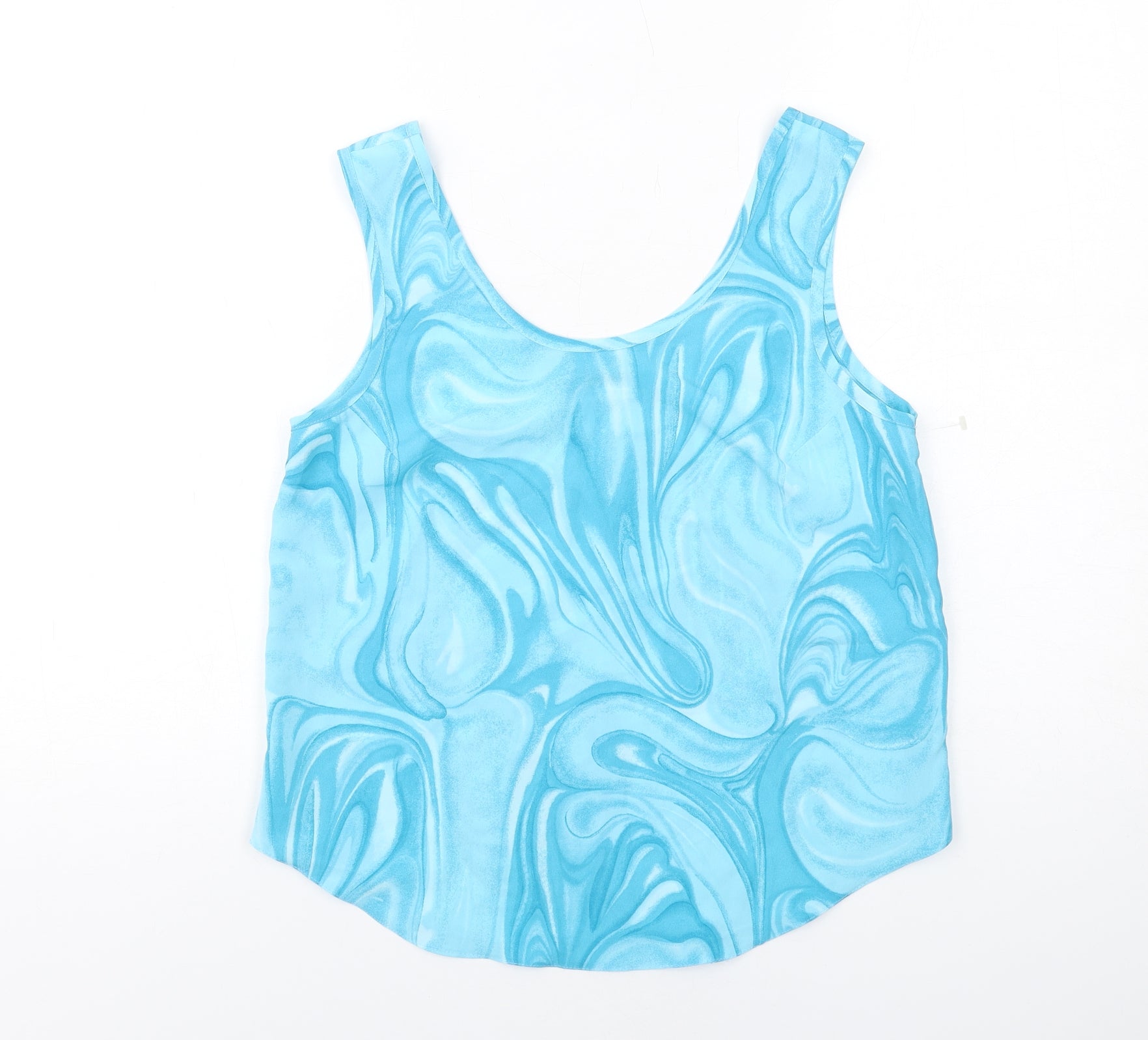 Womens Blue Geometric Polyester Camisole Tank Size 10 Round Neck