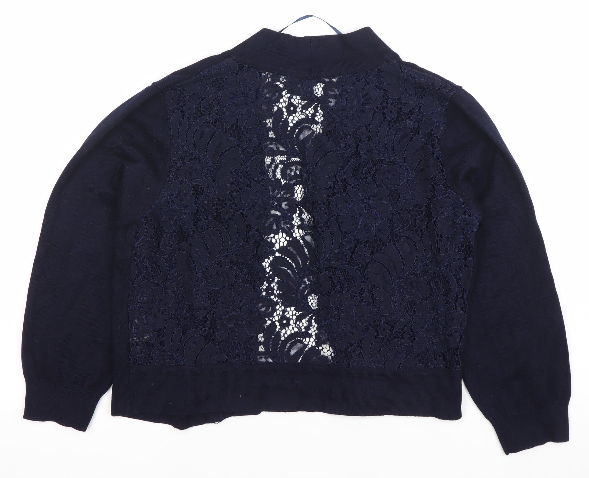 Womens Blue Size 12 Lace Back Long Sleeve Cardigan