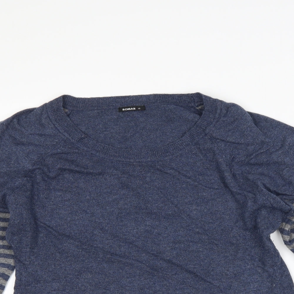 Roman Womens Blue Polka Dot Scoop Neck Long Sleeve Jumper Size 12