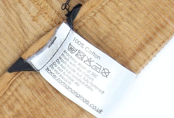 Elevate your wardrobe with this Roman brown corduroy mini skirt, perfect for casual autumn and winter outings. Crafted from 100% cotton, it offers comfort and breathability while giving a warm texture. The button accents add a vintage touch, and the practical pockets are ideal for daily use. This women's regular size 18 skirt is machine washable, ensuring easy care. Although it is slightly worn, it remains in excellent condition, making it a versatile addition to any outfit, paired beautifully with cosy sweaters or lighter tops.