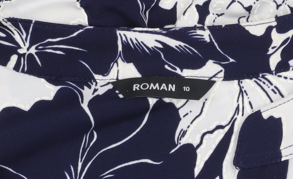 Elevate your wardrobe with this chic Roman Women's Floral Tunic Blouse. Designed in a flattering Size 10, this blouse combines style and comfort effortlessly. The multicoloured floral pattern is eye-catching and perfect for any casual occasion. Featuring 3/4 balloon sleeves and a classic round neckline, it's the ideal choice for both spring and summer days. Crafted from a blend of polyester and elastane, the material offers a soft touch with just the right amount of stretch for a comfortable fit. Its tunic style adds an elegant flair, making it versatile enough to wear with jeans or tailored trousers. Though gently worn, it remains in excellent condition with light wear and no visible stains. Machine washable for easy care, this blouse is a great addition to any woman's casual collection. Priced at £18.75, it's a stylish bargain not to be missed.