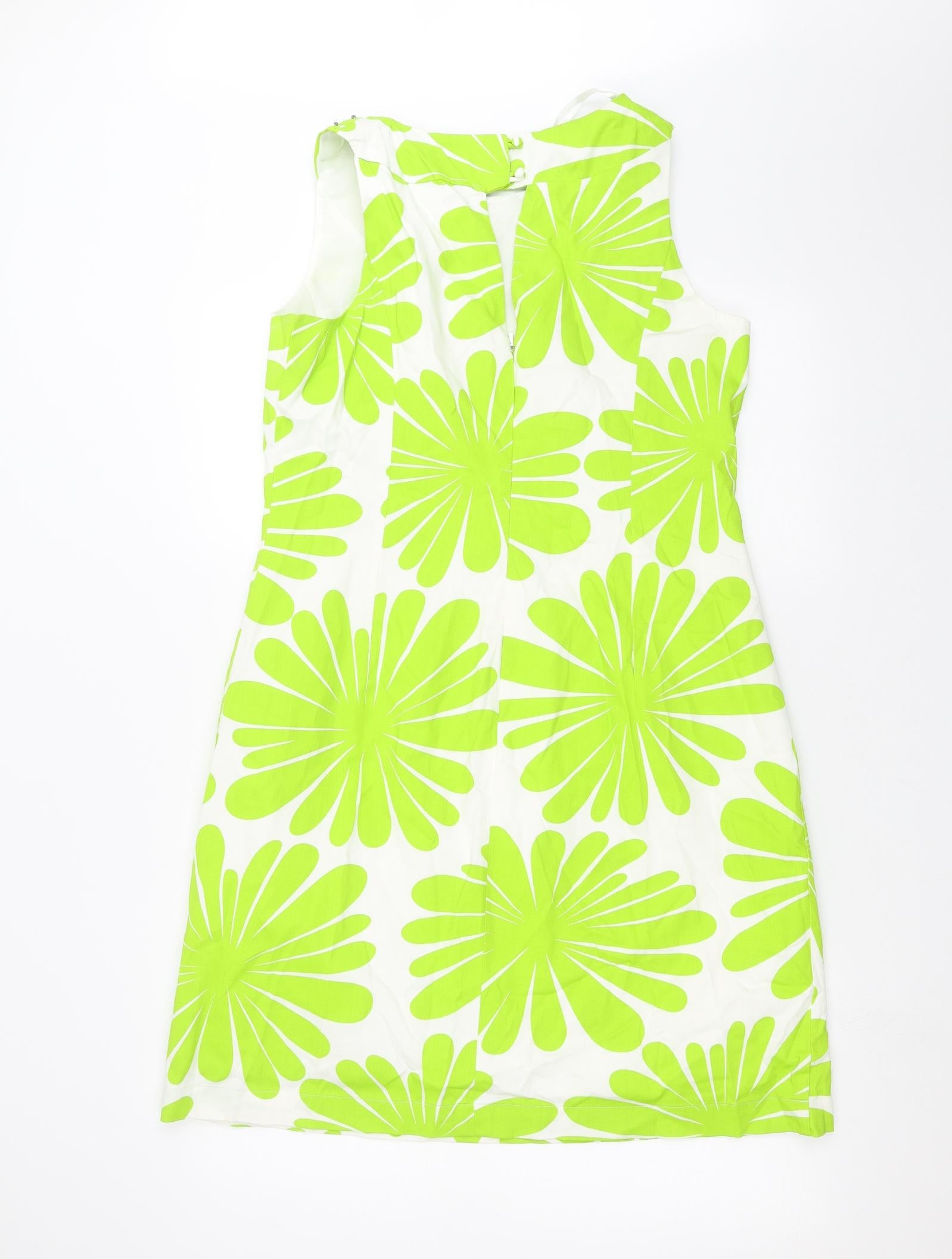 Womens Green Floral Shift Size 14 - beaded neck line