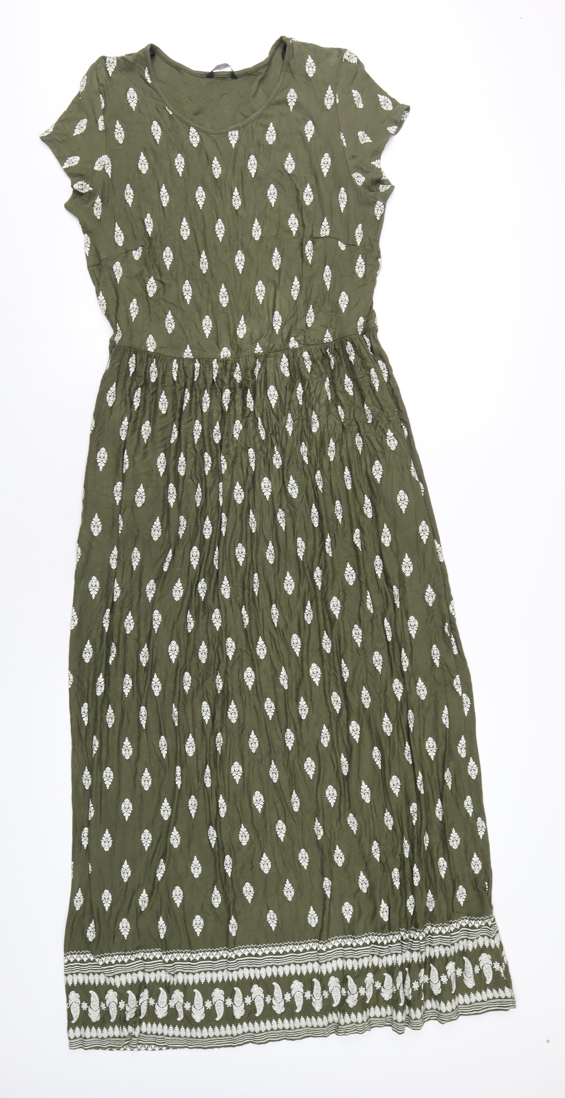 Womens Green Geometric Viscose Maxi Size 16 Scoop Neck Pullover