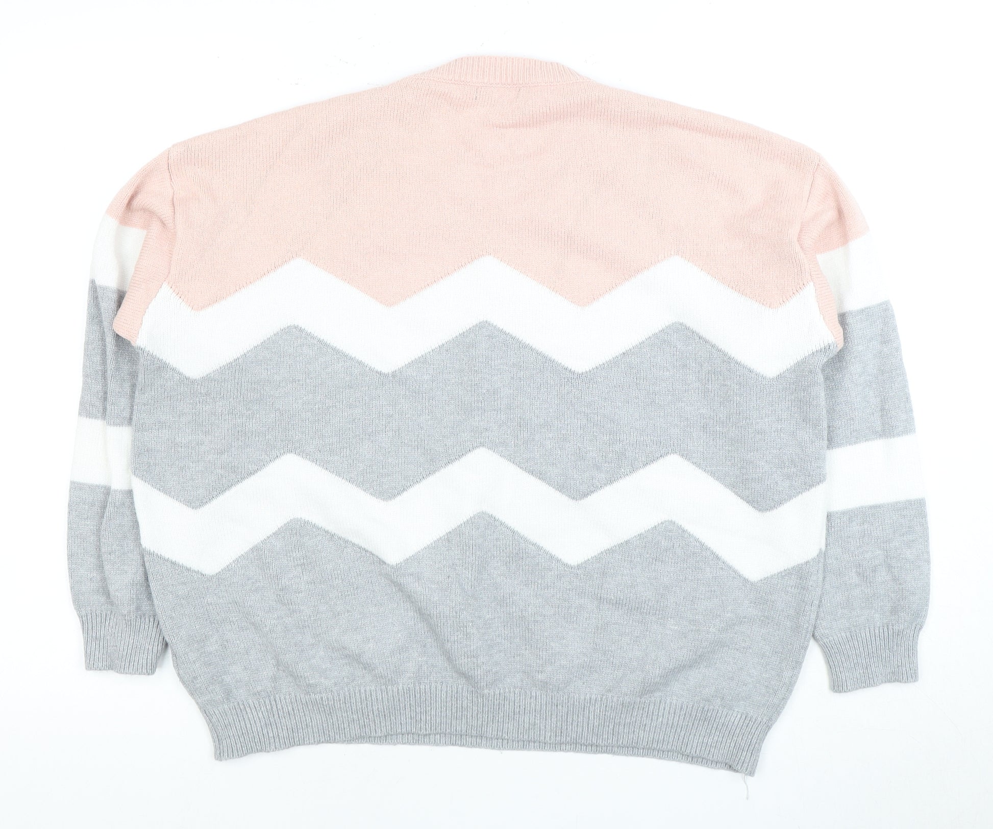 Elevate your wardrobe with this stylish Roman Women's Jumper, designed for casual comfort and chic style. Featuring a pleasing blend of pink, grey, and white, this pullover is perfect for adding a touch of geometric flair to your everyday outfit. Crafted entirely from polyester, it ensures a soft and durable knit, providing warmth and comfort across all seasons. The crew neck and long sleeves create a classic look, versatile enough for a variety of occasions. Ideal for women looking for a regular fit, this jumper maintains a relaxed yet sophisticated appearance. Easy garment care means you can machine wash it, ensuring practicality without compromising on style. With no visible damage, this jumper is in excellent condition, offering the assurance of quality. Whether heading out for a casual day with friends or a relaxed evening, this Roman jumper is a perfect choice. Add this to your collection for a mix of style, comfort, and reliable wearability. At an affordable price, expand your wardrobe with a piece that promises versatility and elegance.