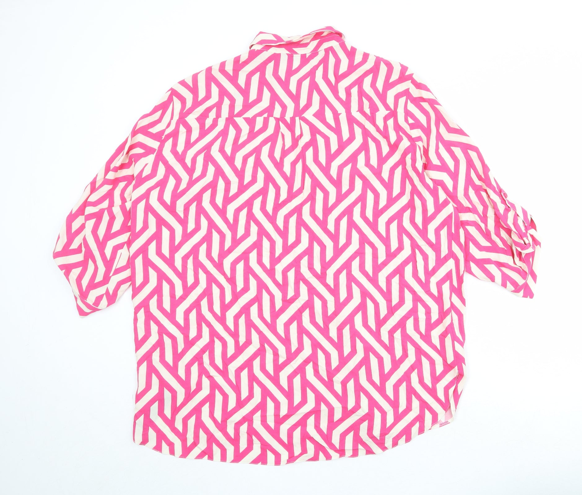 Womens Pink Geometric Viscose Basic Button-Up Size 10 Collared