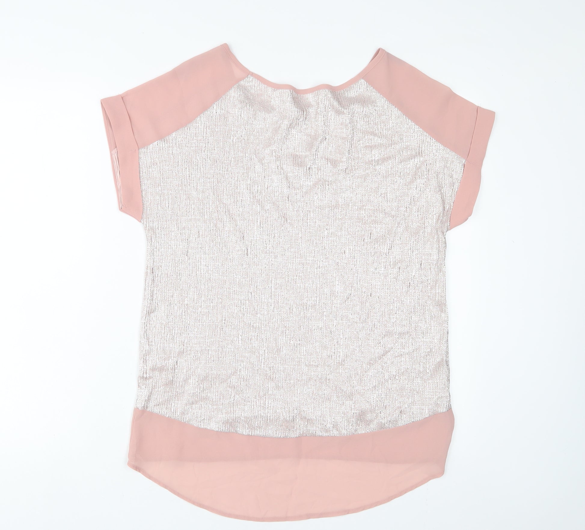 Womens Pink Polyester Basic T-Shirt Size 12 Crew Neck