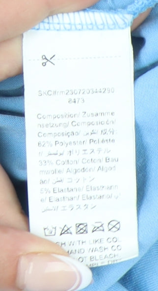 Embrace casual comfort with this Romwe T-shirt in a refreshing blue hue. Tailored for unisex adults, this T-shirt features a classic crew neck and short sleeves, making it a versatile addition to any wardrobe. Crafted from a blend of 62% polyester, 33% cotton, and 5% elastane, it offers a comfortable stretch and breathable quality. Whether you're heading out for a casual day or lounging at home, this T-shirt provides ease with style. The pullover design ensures effortless wear, and its regular fit flatters various body types. Ideal for everyday wearing, it's machine washable for added convenience. Despite having no original tags, the T-shirt remains in excellent condition with no visible defects. Elevate your casual wardrobe staples with this easy-to-style blue T-shirt from Romwe, perfect for any laid-back occasion.