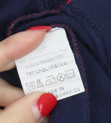 Upgrade your athletic wardrobe with these versatile Ronhill men's jogger trousers. These stylish blue joggers are perfect for casual outings or sporting activities, embodying a blend of comfort and functionality. Made from durable polyester, they are designed to withstand regular machine washing, making them easy to maintain. With a tapered leg style and featuring convenient ankle zips, these trousers provide a snug fit that ensures your comfort during any activity. The reflective accents enhance visibility during evening jogs, adding a layer of safety to your workout routine. The simplistic logo accent on the trousers offers a touch of brand recognition without being overly bold. Designed for all-season wear, these joggers are excellent for sports, ensuring you're comfortable whether during casual runs or intensive workouts. They are crafted with a flat front and come with practical slash pockets, providing handy storage for small essentials. While missing the original sales tags, the trousers are in excellent condition with slight lint, ready to be worn and loved. Elevate your sportswear collection with this reliable pair of Ronhill joggers, ideal for the active man who values both style and functionality.
