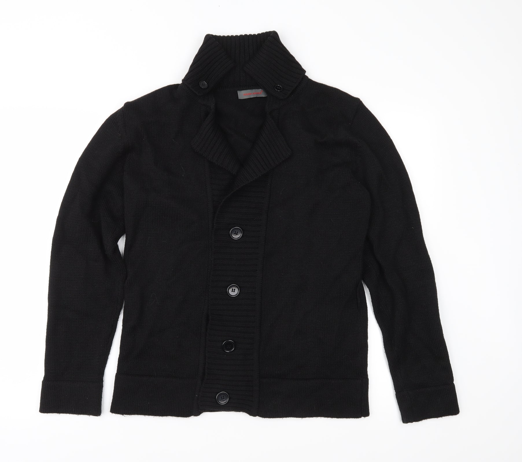 Dissident Men’s Black L Cardigan Jumper High Neck Chunky Knit Wool Blend