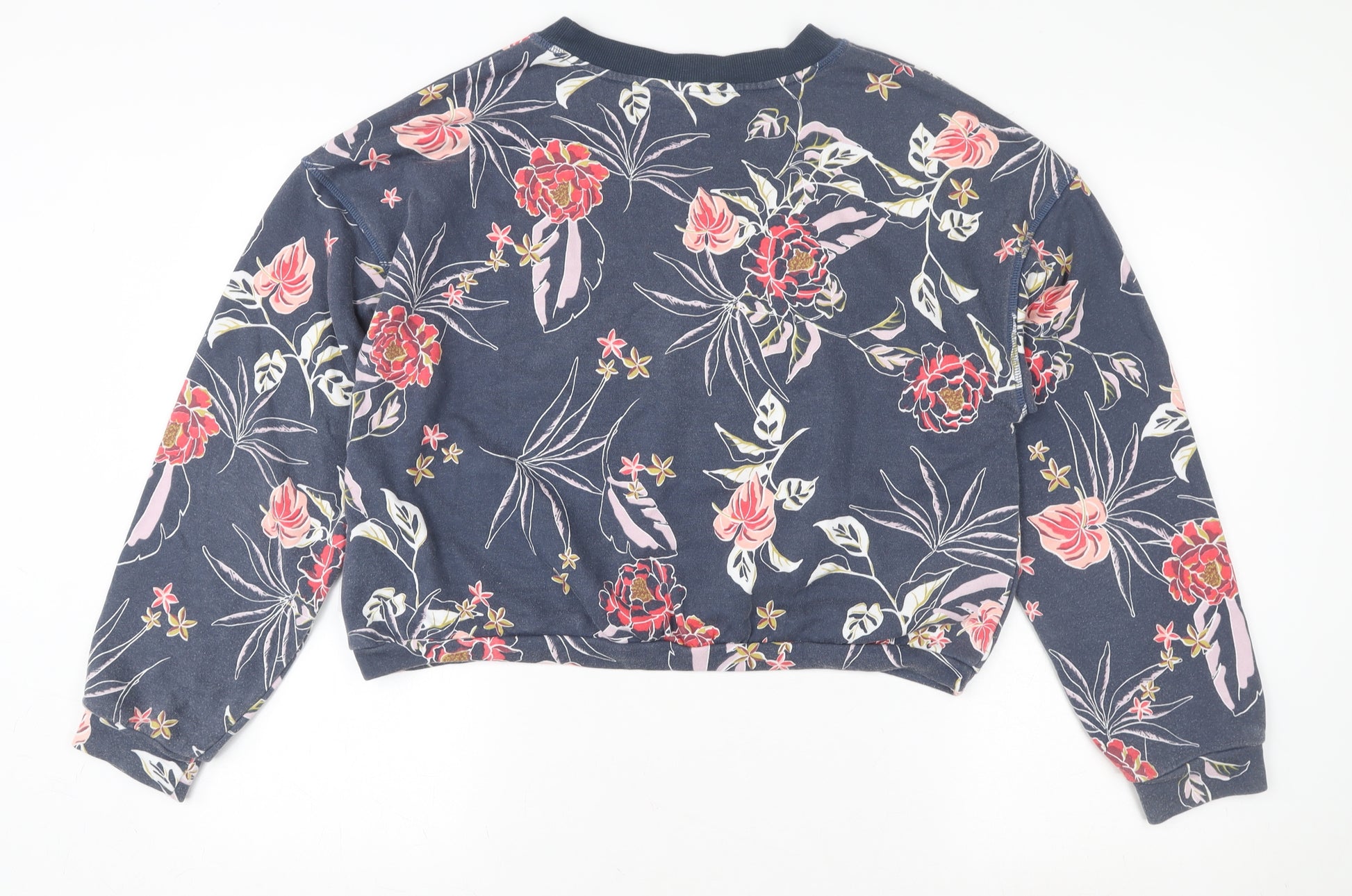 Roxy Women's Blue Floral Pullover Sweatshirt Size M Cotton Blend