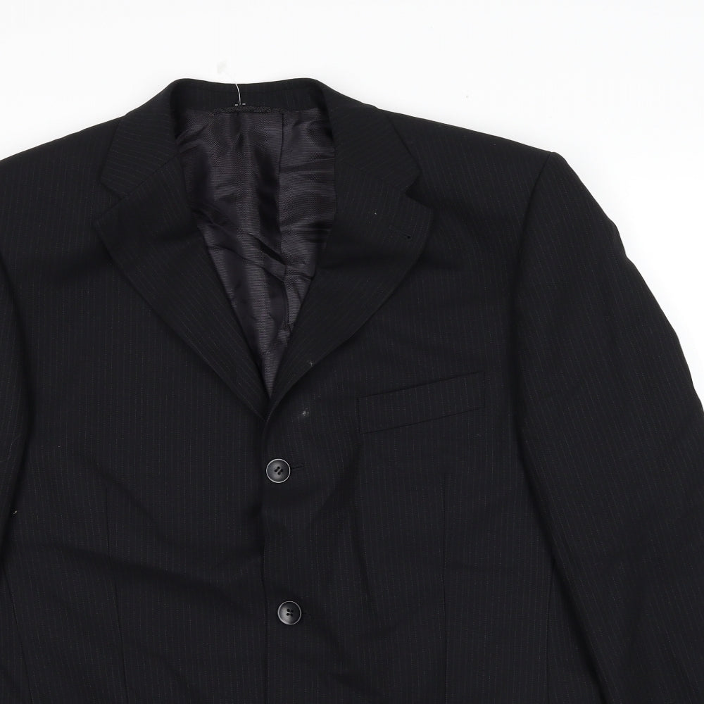 Mens Black Striped Wool Jacket Suit Jacket Size XL Regular