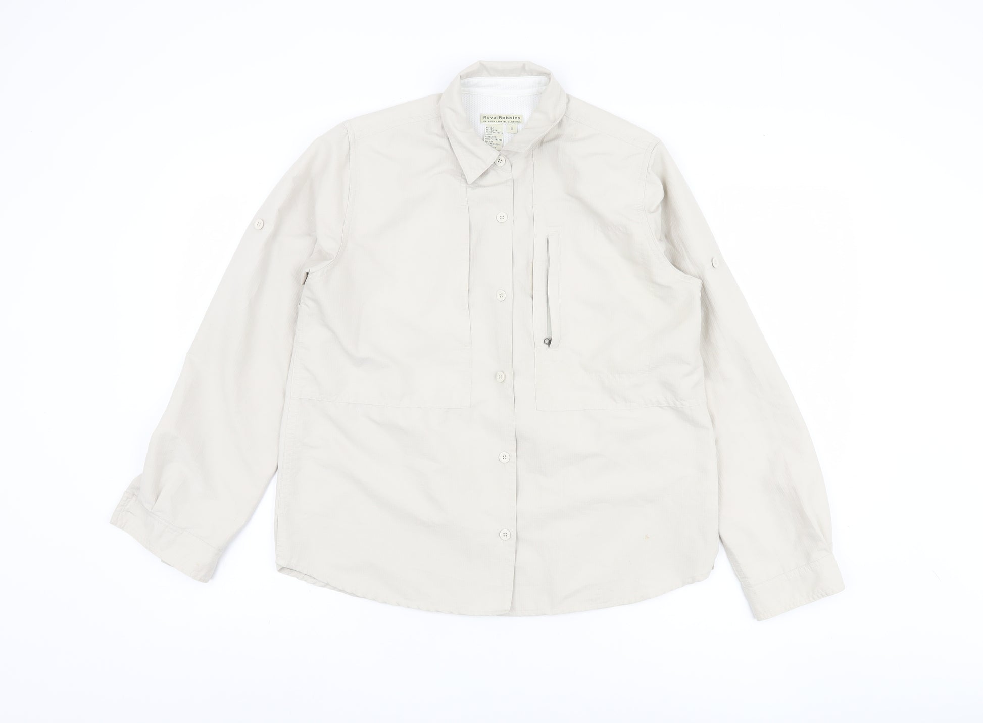Discover the perfect blend of style and functionality with the Royal Robbins Men's Beige Button-Up Shirt in size Small. Designed for the modern adventurer, this long-sleeve shirt is crafted from 100% polyester, offering a lightweight and comfortable fit that is ideal for casual outings and travel. The shirt's solid beige color makes it a versatile wardrobe staple, easily paired with a variety of trousers or shorts. Featuring a point collar and button-up closure, this shirt combines classic appeal with practical design elements. The royal Robbins brand is synonymous with quality and durability, making this shirt a reliable choice for the discerning gentleman. Whether you're exploring the great outdoors or enjoying a casual day out, this shirt provides comfort and style in equal measure. The machine washable fabric ensures easy care, maintaining its fresh and new appearance after every wash. Embrace all-season versatility with this essential wardrobe piece, perfect for layering or wearing on its own. The shirt is new with tags, ensuring its impeccable condition. Priced competitively, this button-up shirt is an excellent addition to any men's collection, promising to elevate your style while offering practical wearability.