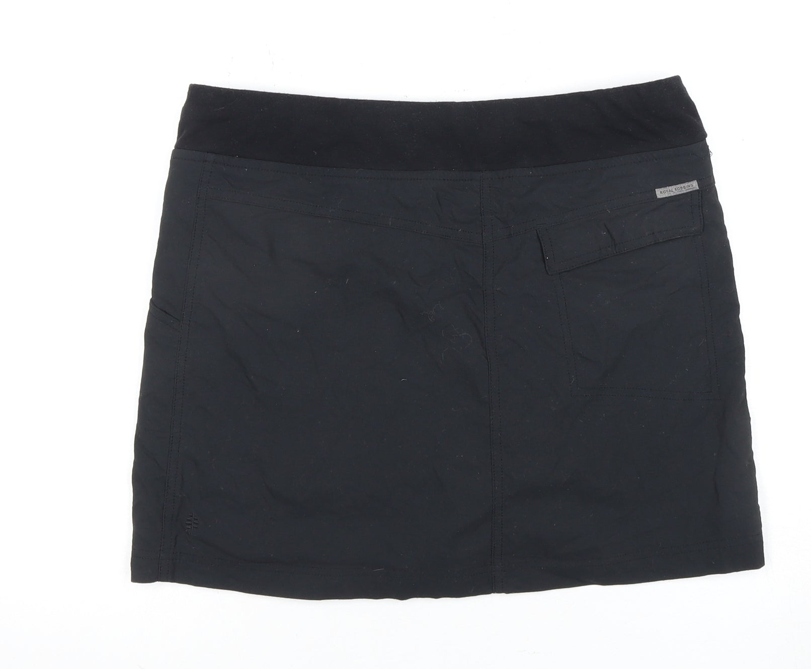Discover the perfect blend of style and comfort with this Royal Robbins Women's Short Skirt. Sleek in classic black, this skirt features a Straight & Pencil design that flatters any silhouette. Crafted for modern women, the mid-rise and elastic waist provide a comfortable fit, making it ideal for all-day wear, whether you're heading into the city for a casual outing or enjoying a relaxed day outdoors.This skirt is engineered from a mixture of polyester, cotton, and spandex, providing durability and stretch while maintaining a soft, canvas-like feel. It's designed without a pattern, allowing for versatile pairing with various tops and accessories in your wardrobe. With functional pockets and a practical zip closure, it brings convenience and style seamlessly together.Suitable for all seasons, this skirt is perfect for versatile, fuss-free fashion. Pair it with a simple tee in summer or layer with tights and boots for a chic winter look. The neutral black tone ensures it complements every colour palette, while the absence of overt patterns gives it a timeless aesthetic.Despite its pre-owned status, this skirt remains in excellent condition, showing only slight wear and no original sales tags. It's machine washable, offering easy maintenance for busy lifestyles. Excellent for those who value both functionality and fashion, this Royal Robbins skirt is an excellent addition to any wardrobe. Secure it now for a touch of elegance and practicality each time you step out.