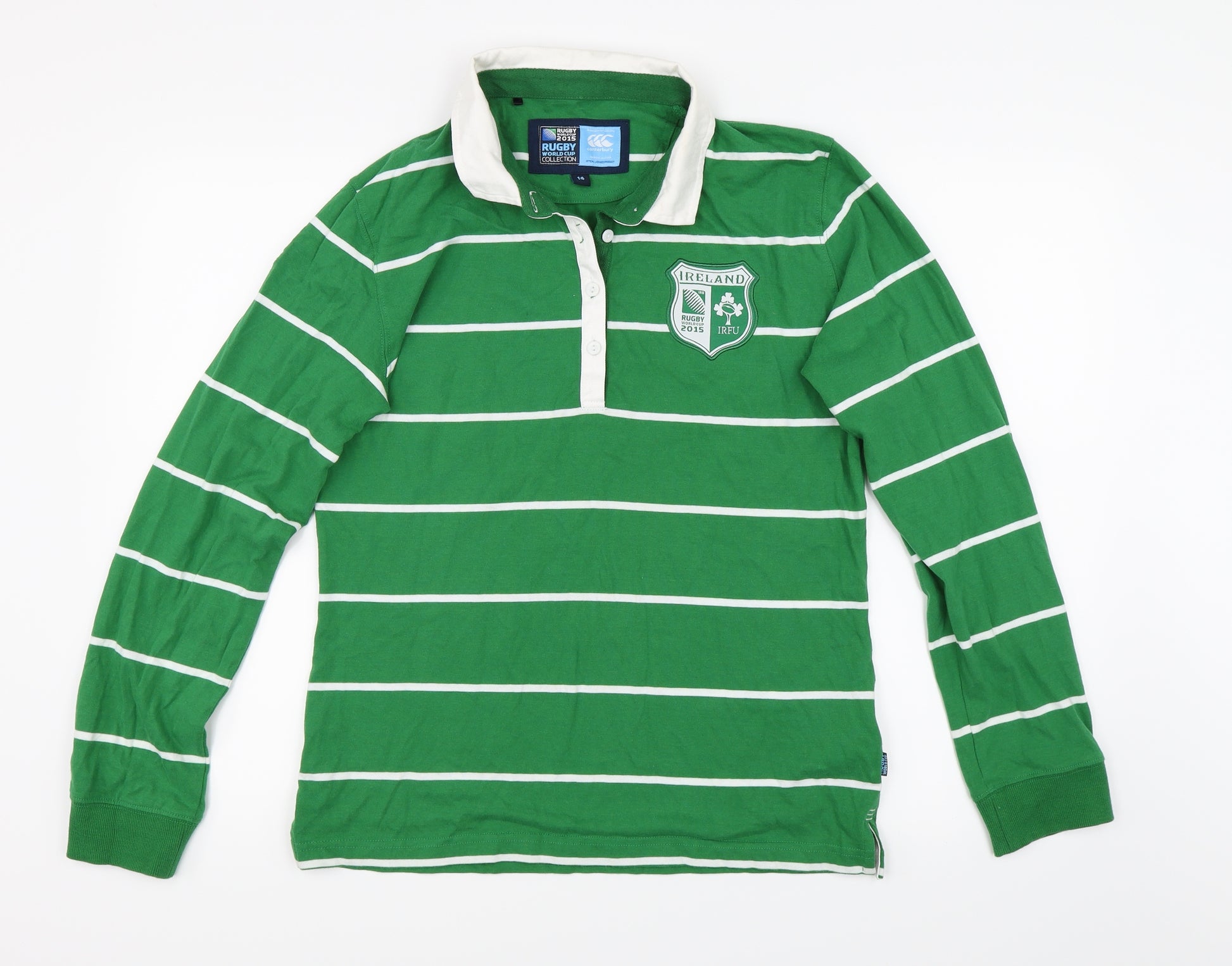 Womens Green Striped Basic Polo Size 14 - Ireland World Cup 2015