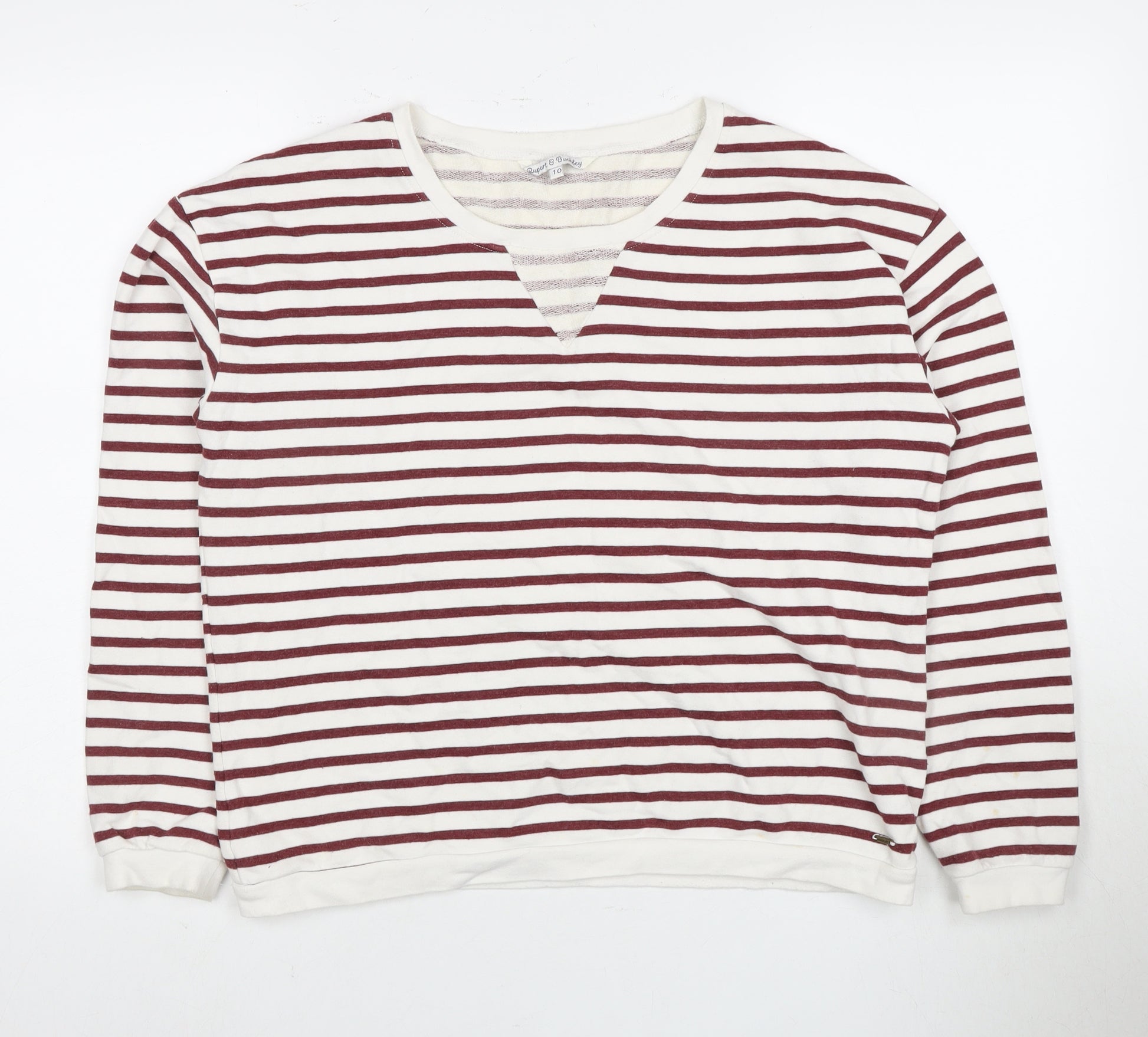 Lazy Jacks Women White Navy Pink Striped Henley Sweatshirt Size 10