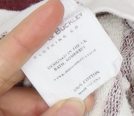 Introducing the Rupert & Buckley Women's Striped V-Neck Sweatshirt, a perfect blend of style and comfort ideal for your casual wardrobe. This eye-catching pullover features a beautiful and timeless striped pattern in a multicoloured palette that effortlessly complements any look. Crafted from 100% cotton, it ensures a soft touch against the skin, providing breathability and comfort throughout the day. Designed with a relaxed fit, this sweatshirt is perfect for all-season wear, making it a versatile addition to your attire. The long sleeves and V-neck offer a classic silhouette, perfect for layering over your favourite tops or wearing alone. Whether you're heading out for a laid-back day with friends or lounging at home, this sweatshirt is your go-to choice for effortless style. With its expert craftsmanship, easy care machine washability, and durable knit fabric, the Rupert & Buckley V-Neck Sweatshirt is here to elevate your casual ensembles. Don't miss out on this great find at an affordable price.