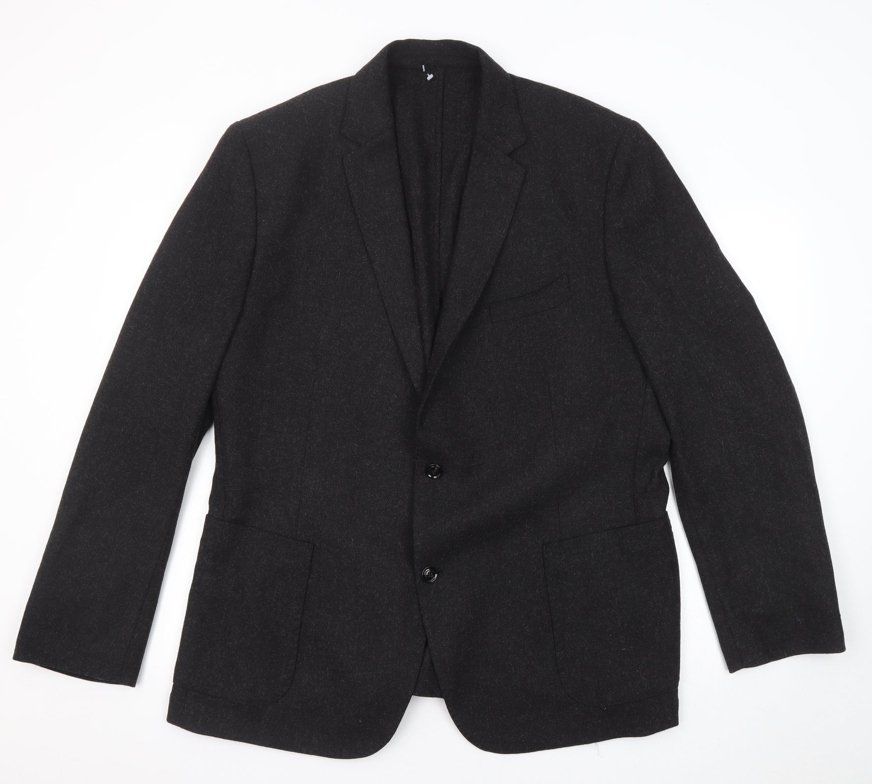 Mens Black Wool Jacket Blazer Size 56 Regular