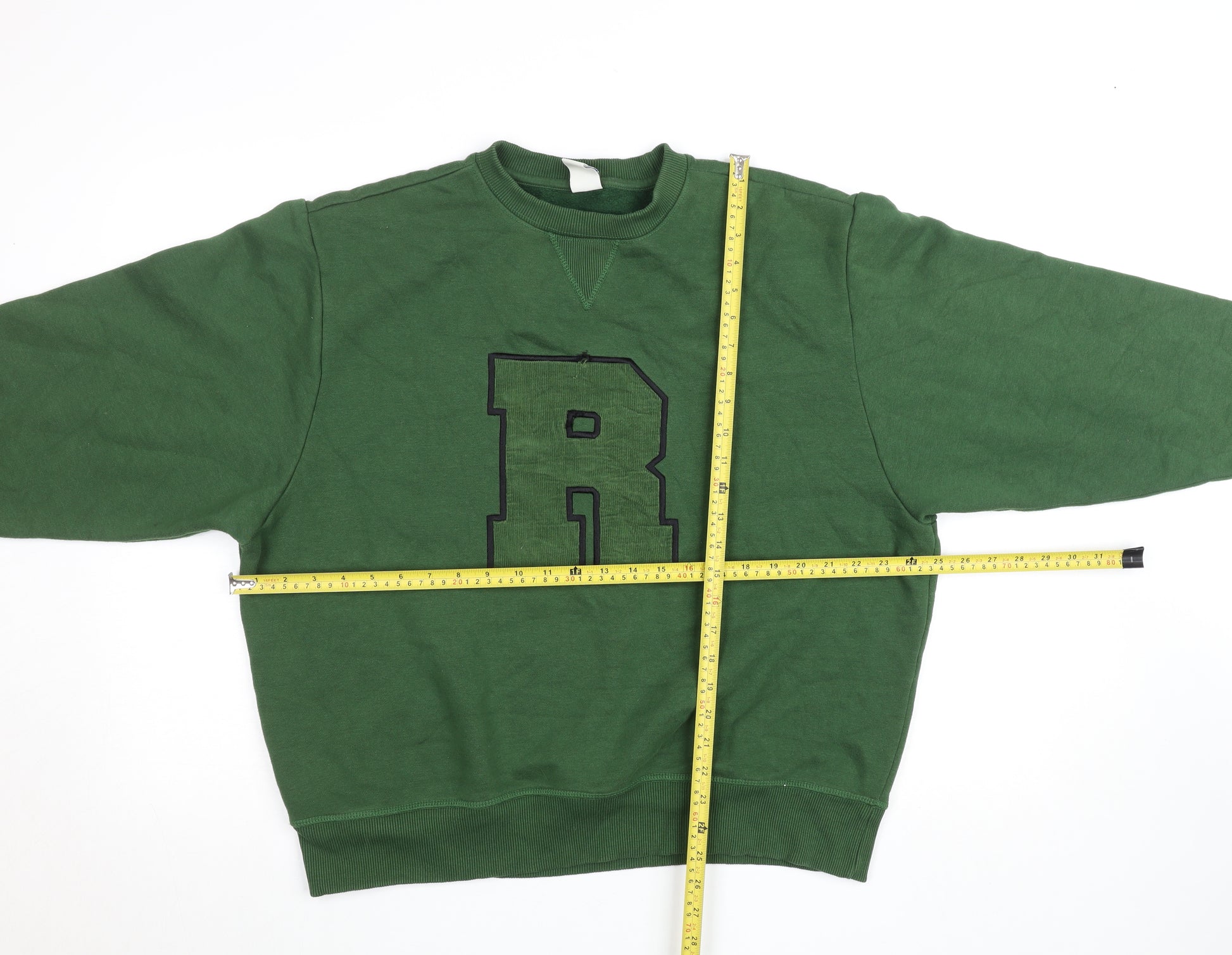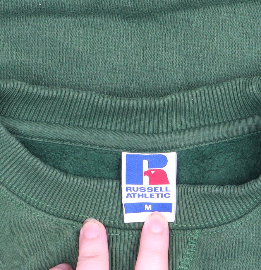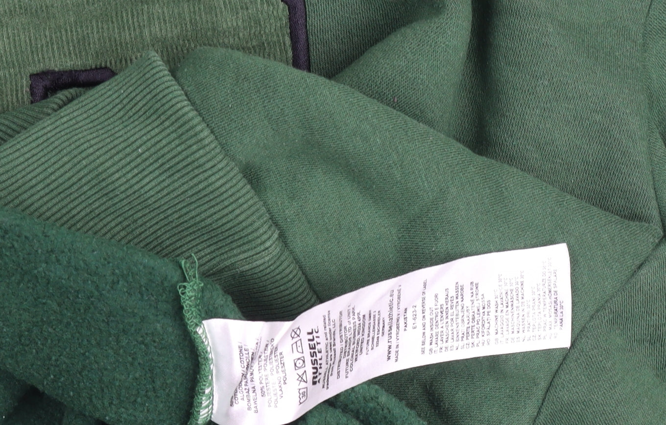 Step up your casualwear game with this classic green sweatshirt from Russell Athletic, a brand known for its blend of heritage sportswear and timeless comfort. Designed in a pullover style, this medium-sized men’s sweatshirt delivers a regular fit that is both relaxed and effortlessly stylish. The soft fleece fabric provides excellent warmth, making it ideal for the cooler seasons of autumn and winter, as well as transitional spring days. Crafted from a quality blend of 80% cotton and 20% polyester, it ensures durability, breathability, and easy maintenance — being fully machine washable for practicality. The interior features a brushed fleece lining for extra comfort and insulation. The bold varsity-style ‘R’ logo on the front adds authentic college and athletic flair, reflecting the brand’s sporting roots. This sweatshirt is perfect for layering over a t-shirt or wearing on its own for a laid-back look.With its ribbed crew neckline, cuffs, and hem, it ensures a secure fit that holds its shape wear after wear. The crisp green tone pairs easily with jeans, joggers, or shorts, offering versatile styling options for everyday wear, workouts, or weekend lounging. Its subtle graphic print and collegiate theme lend a sporty yet retro aesthetic, making it an appealing choice for those who appreciate classic athletic-inspired fashion. This pre-owned piece is in very good condition, showing light wear and slight fading consistent with gentle use. The sweatshirt retains its structure and softness, ensuring plenty of wear still to come. Perfect for men seeking quality casualwear with authentic sports heritage, this Russell Athletic sweatshirt brings comfort, warmth, and vintage-inspired appeal to your wardrobe at a great value price. Whether you're heading to the gym, running errands, or relaxing at home, it’s a dependable go-to that completes any casual outfit effortlessly.