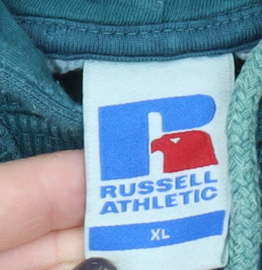 Elevate your casual sports attire with this Russell Athletic Men's Pullover Hoodie, designed for comfort and style. In a versatile green hue, this hoodie features a classic pullover style with the iconic Russell Athletic logo as an accent, adding a touch of sporty sophistication. Crafted from a fleece fabric blend, primarily composed of 53% cotton and 47% polyester, it promises warmth without sacrificing breathability—a perfect choice for all seasons. The hoodie comes in size XL, tailored for a regular fit, ensuring ample room for movement. The long sleeves and crew neckline are designed to provide maximum comfort and ease. It features an essential hood with a drawstring closure, allowing you to adjust as needed. The kangaroo pocket at the front not only enhances its style but also offers practical storage for your essentials or a place to keep your hands warm. Perfect for men who appreciate both functionality and an active-inspired theme, this hoodie is suitable for various activities, especially in the realm of track and field. Whether you're heading out for a morning jog or simply lounging at home, this hoodie ensures you remain comfortable and on-trend. Maintenance is easy, with machine washable care instructions, facilitating household cleaning routines. Although in excellent condition with light wear, it remains stylish and functional without visible damage. This hoodie offers a seamlessly blended practical piece with aesthetics, making it an indispensable addition to any modern man's wardrobe. Don't miss the opportunity to own this blend of practicality and style—order today to secure your piece of athletic craftsmanship.