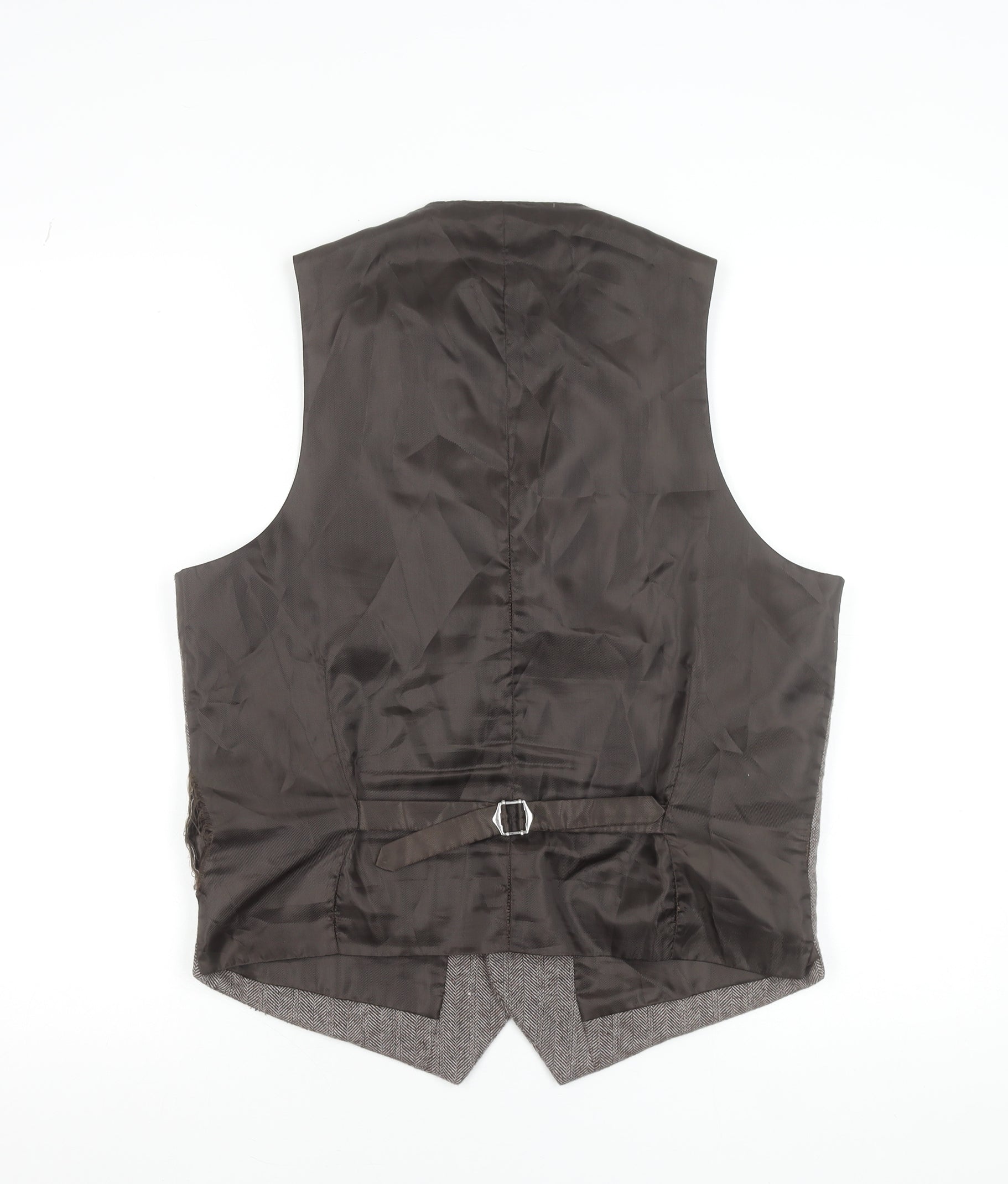 Men's Brown Herringbone Wool Blend Waistcoat S