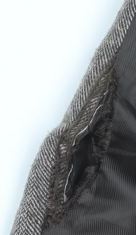 This Ruth & Boaz men's waistcoat is a refined piece of tailoring that adds timeless sophistication to any ensemble. Crafted from a premium wool-polyester blend, it features a smart herringbone pattern in a versatile grey tone, ideal for business or formal wear. The waistcoat offers a classic four-button front closure complemented by a notch lapel, balancing tradition with modern style. The back is fully lined in soft polyester for comfort and durability, with an adjustable waist strap to ensure a flattering fit. Subtle details such as two front welt pockets and a belted back enhance the piece’s refined styling. Designed for the discerning gentleman, this waistcoat pairs effortlessly with trousers or can be layered under a blazer for a complete three-piece suit look. Its medium-weight tweed fabric makes it particularly suitable for the autumn and winter seasons, adding both warmth and texture. Though pre-owned, it remains in very good condition with only minor fraying near one arm seam that does not affect wear or appearance. Perfect for weddings, office wear, or semi-formal gatherings, this classic grey waistcoat exudes understated charm and reliability. For those seeking a versatile and stylish addition to their wardrobe, the Ruth & Boaz wool blend waistcoat delivers both elegance and practicality. Its tailoring and craftsmanship make it a distinguished choice for men who appreciate timeless fashion with contemporary details.