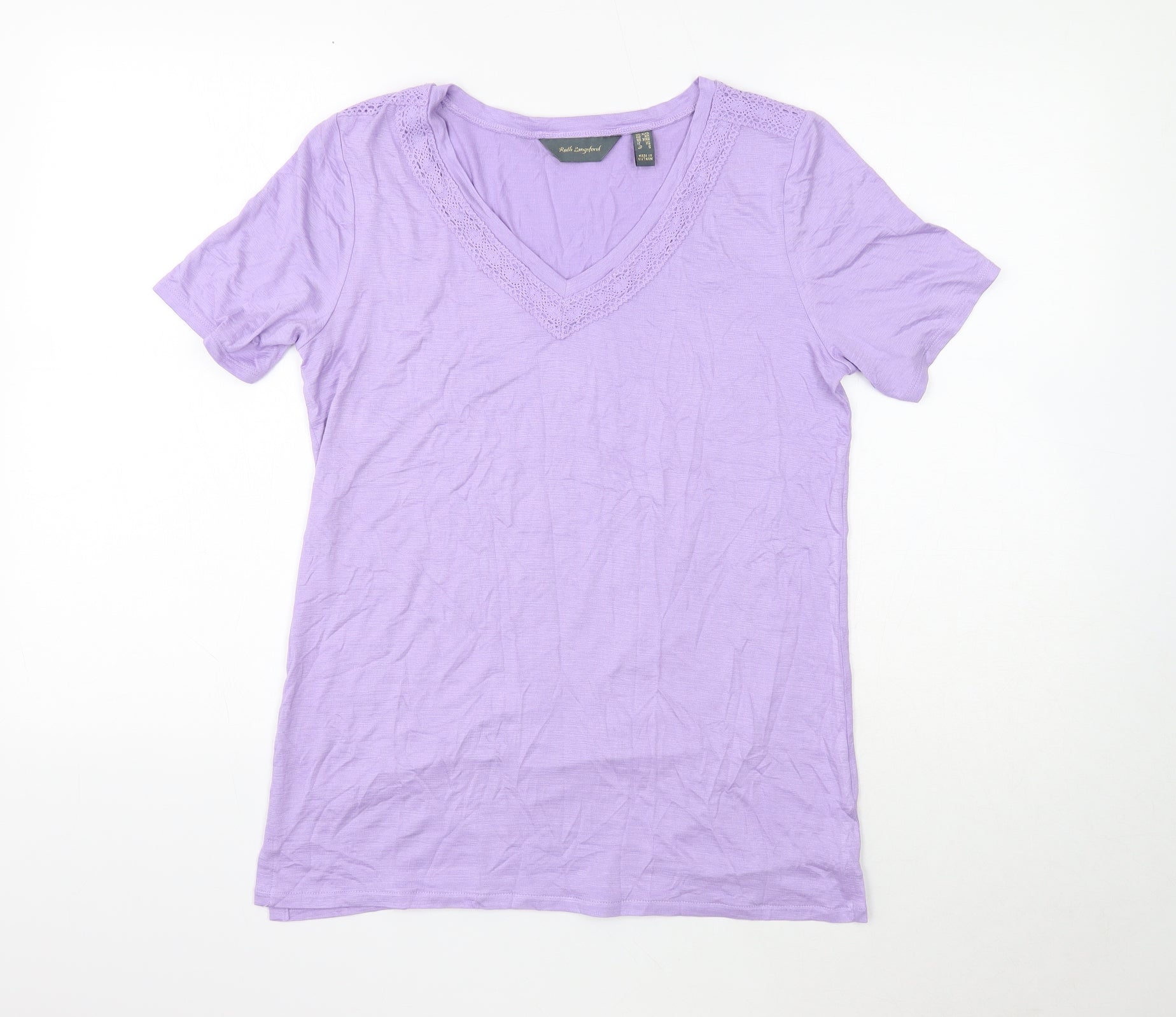 Womens Purple Viscose Basic T-Shirt Size XS V-Neck