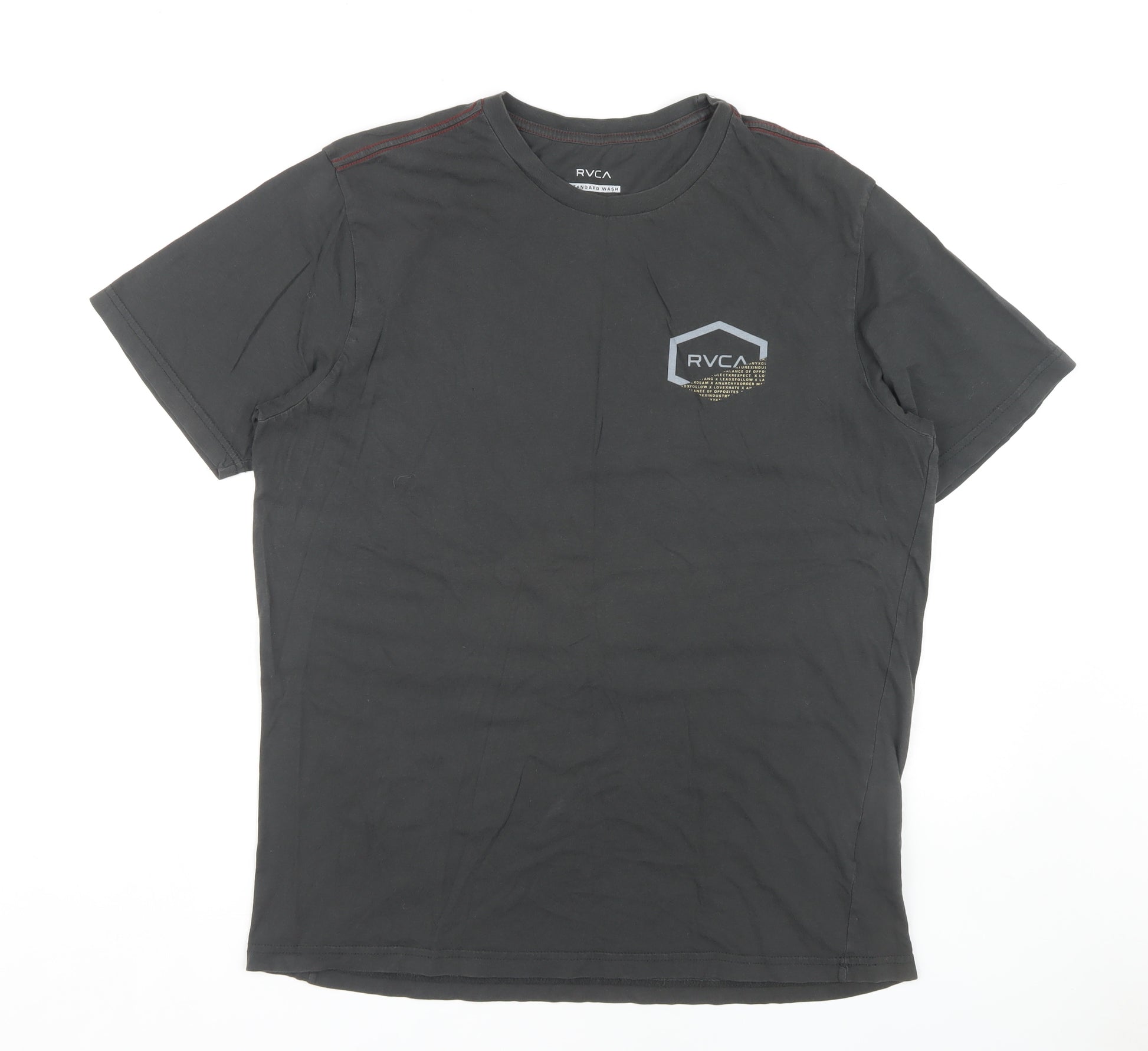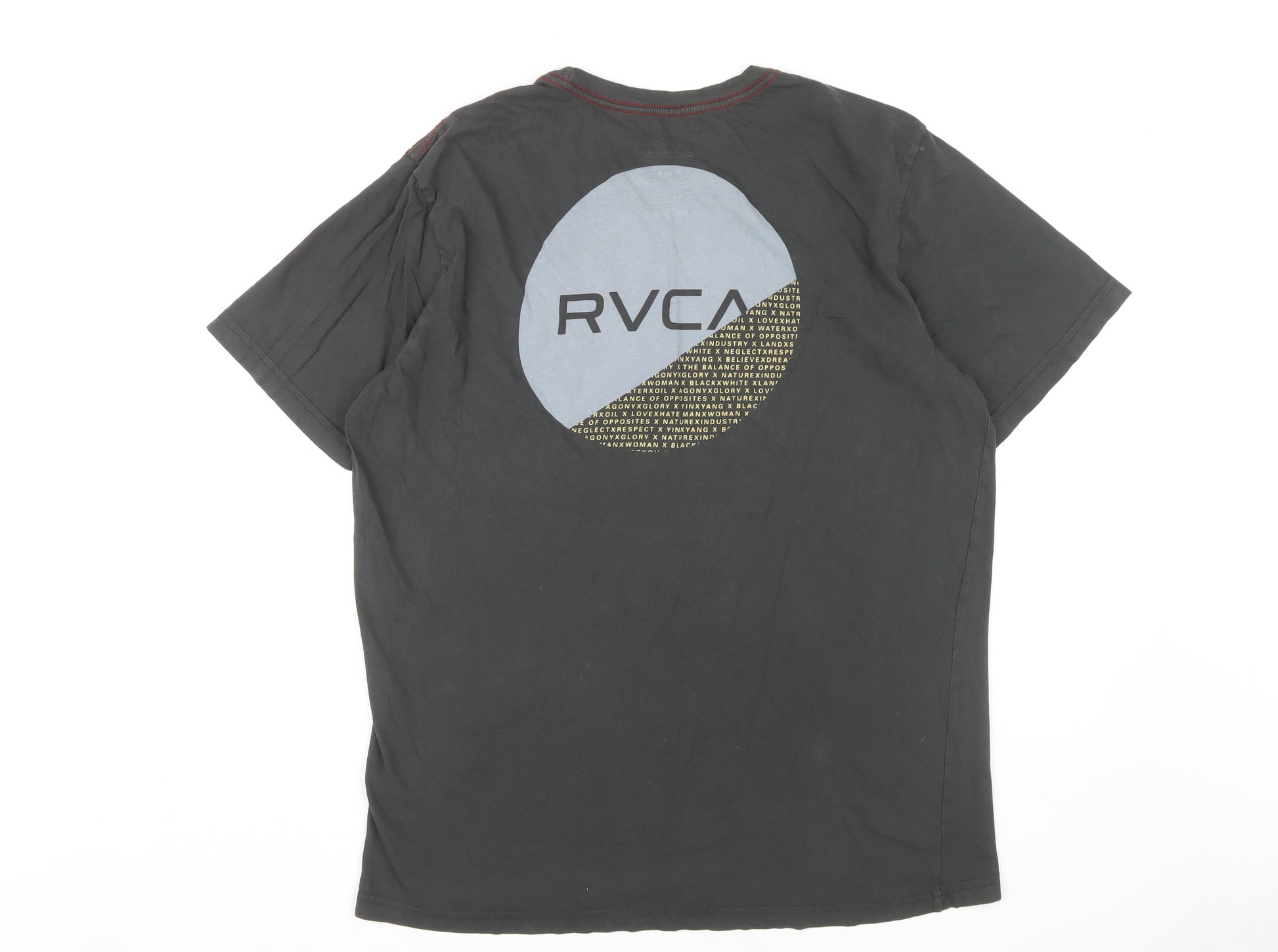 Discover the effortlessly cool style of the RVCA Men's Black Graphic Print T-Shirt, designed for those who value comfort without sacrificing fashion. Made from 100% cotton, this t-shirt offers a soft and breathable fit, perfect for any season. Its regular fit and crew neck design make it a versatile piece that pairs easily with jeans or shorts, making it an essential addition to any wardrobe.The striking graphic print adds a bold touch to this classic black t-shirt, providing a unique element that sets it apart from ordinary tees. Whether you're heading out for a casual day or looking to make a statement, this t-shirt ensures you do it in style. The RVCA logo accentuates its modern appeal, reinforcing its high-quality brand recognition.This short-sleeved tee is machine washable, ensuring easy care and longevity. It comes in size L, fitting regular-sized men comfortably. Despite being pre-owned, it is in excellent condition, with only slight wrinkling evident. Its durable construction and timeless design ensure you'll enjoy wearing it for years to come.Ideal for those who appreciate simplicity with a hint of flair, the RVCA Men's Black Graphic Print T-Shirt is perfect for any casual occasion. Its breathable fabric makes it a go-to option for all-day wear, whether you're relaxing at home or meeting friends. Don't miss out on this stylish piece that perfectly blends comfort with a modern edge.