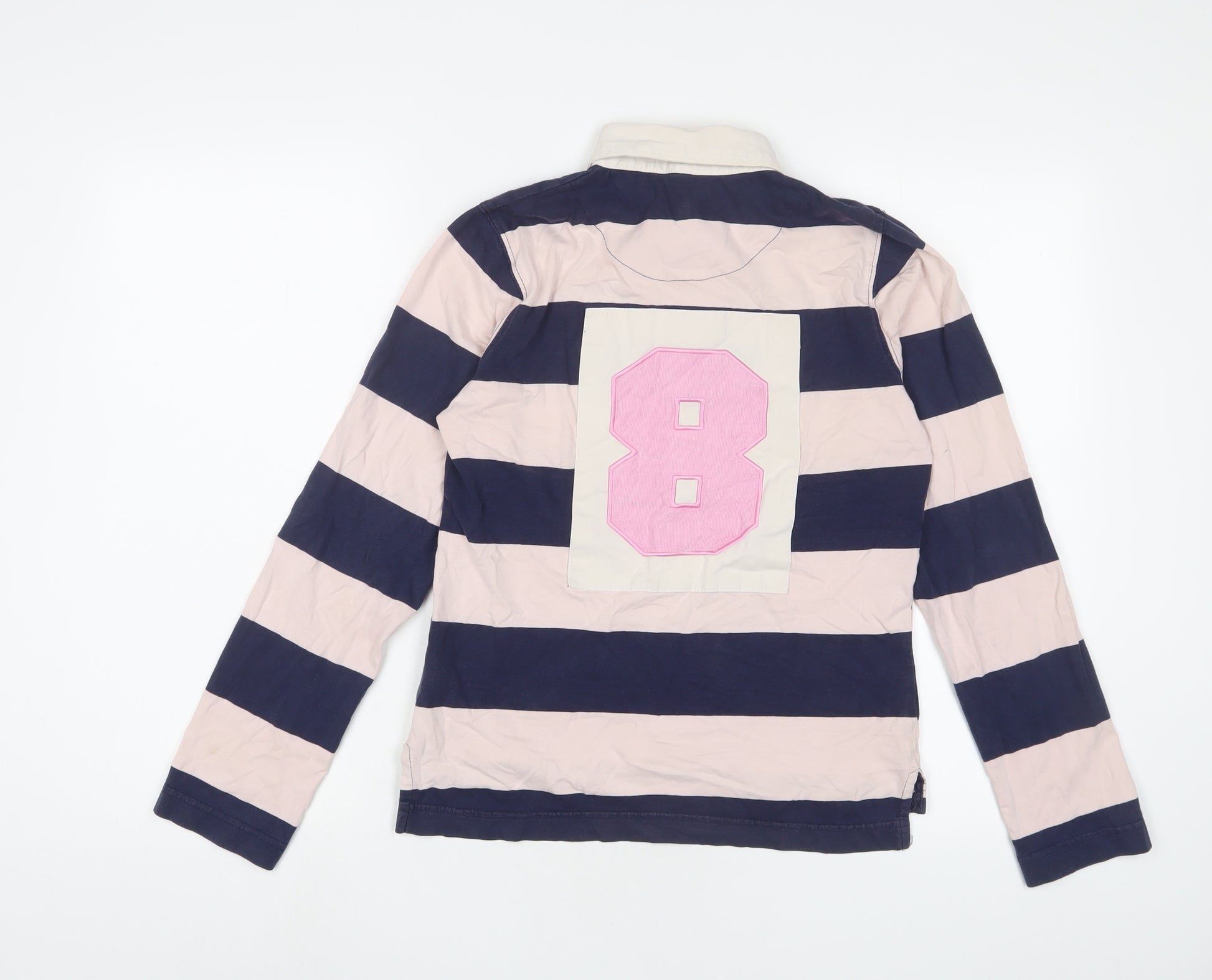 Womens Pink Striped Cotton Basic Polo Size S Collared - Logo, Embroidered