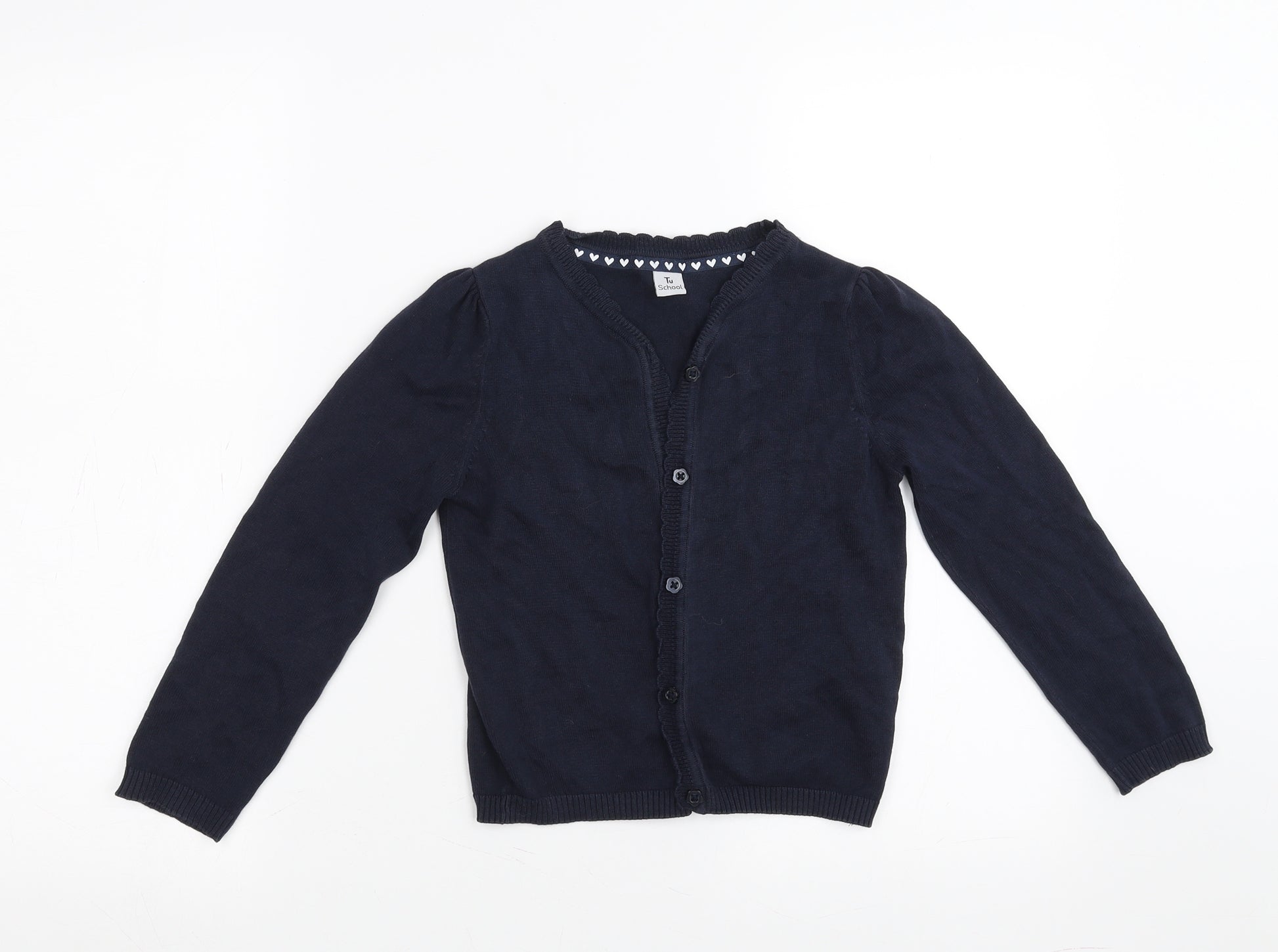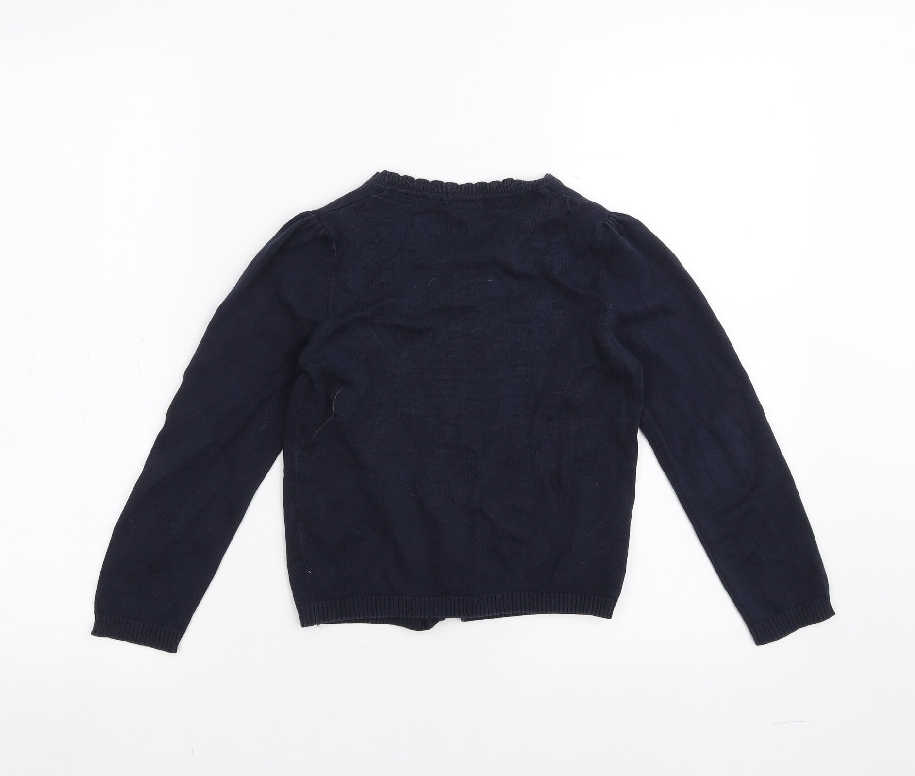 Girls Blue Knit Cardigan Jumper Size 6 Years - School