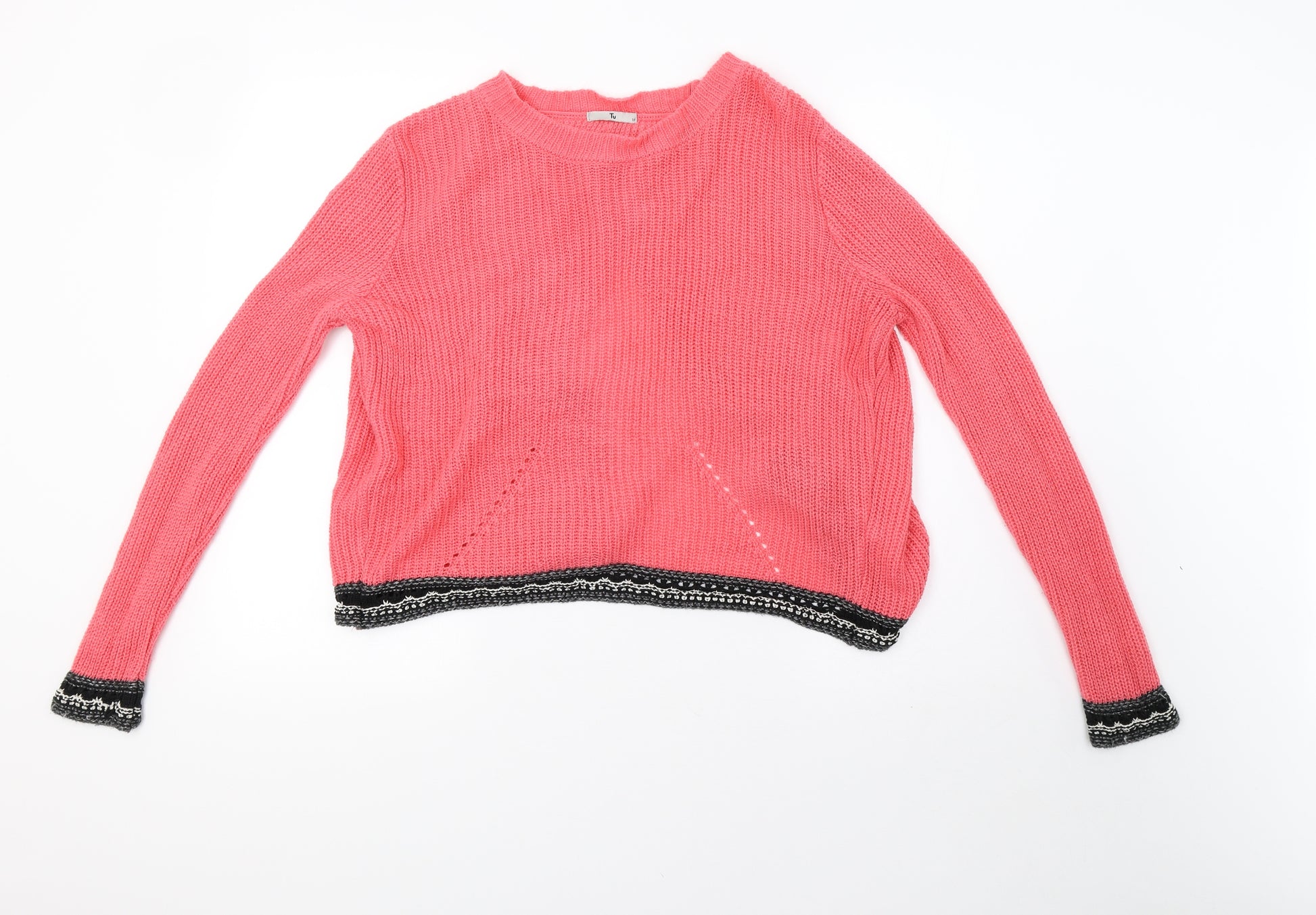 Womens Pink Knit Pullover Sweatshirt Size 12