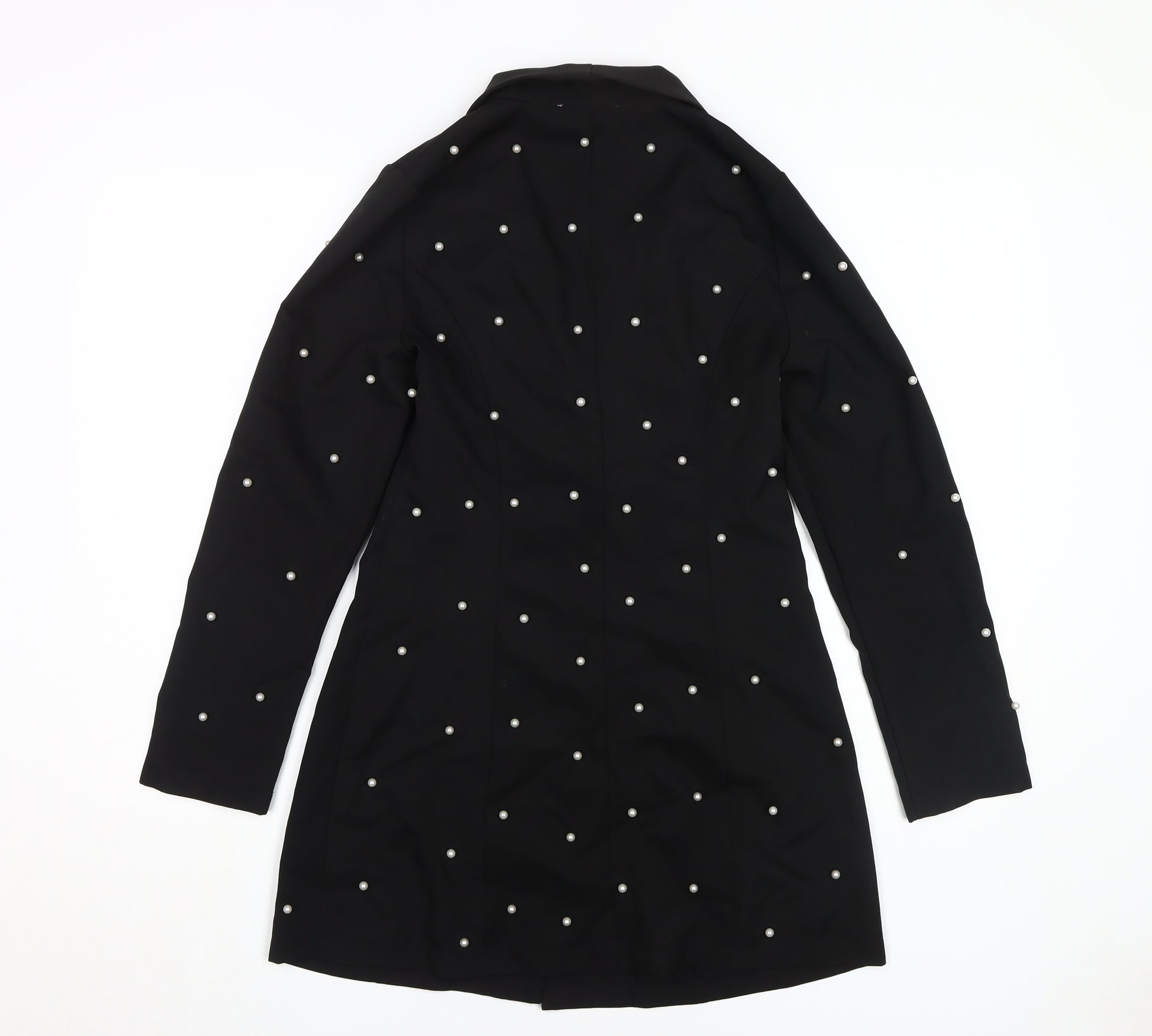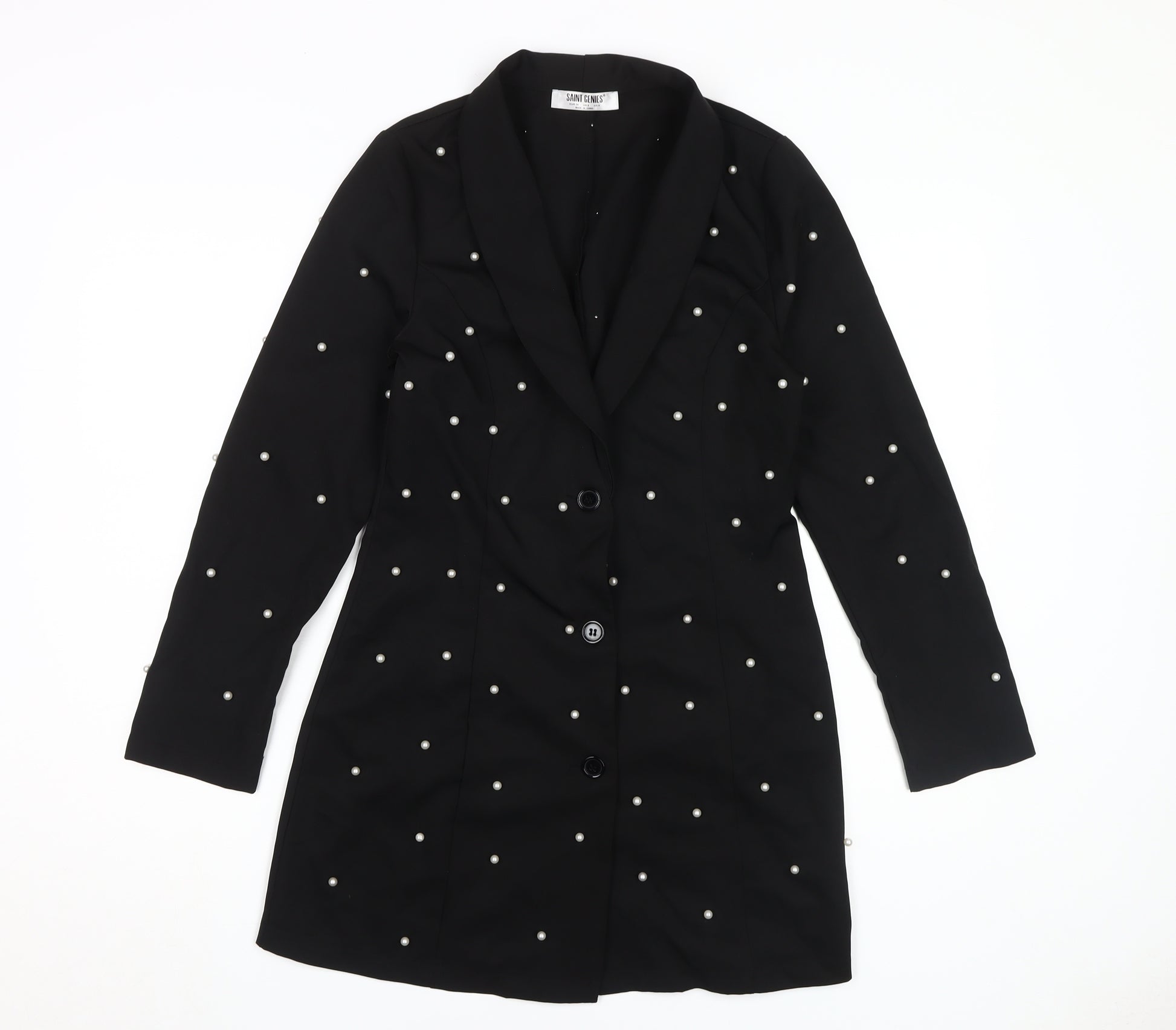 Step out in style with this stunning Saint Genies jacket dress. Perfect for any trendy wardrobe, this black jacket dress is tailored elegantly for women. Adorned with eye-catching beaded accents, the piece offers a modern twist to the classic jacket silhouette. Crafted from a blend of polyester and elastane, it promises a comfortable fit that moves with your body. Designed for versatility, this jacket dress can effortlessly transition from casual outings to formal occasions. The long sleeves and button closure add a touch of sophistication while maintaining ease of wear. Whether you're heading to a business meeting or a cocktail party, this dress ensures you remain the centre of attention. Embrace the contemporary charm of this Saint Genies creation and elevate your ensemble with effortlessly chic style. It's a must-have item that combines fashion-forward aesthetics with unmatched comfort, making it a go-to choice for those seeking a balance between elegance and practicality.