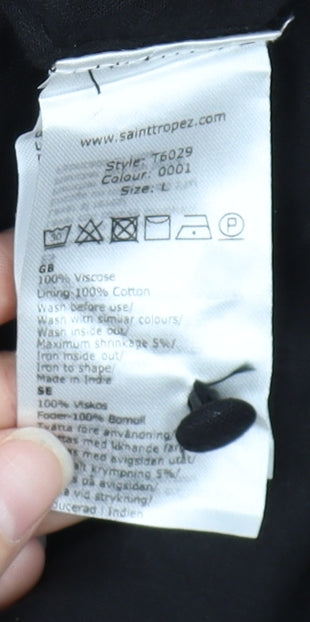 Elevate your wardrobe with this elegant black dress from Saint Tropez, crafted with 100% viscose for a comfortable and silky touch. This versatile piece features a strappy sleeve design, offering a chic and modern look perfect for various occasions. The dress stands out with its simple button accents, presenting a stylish aesthetic that blends with casual or dressy accessories. Whether heading to a casual gathering or a semi-formal event, this dress provides the ultimate in comfort and style. The sleeveless feature makes it ideal for warmer weather, while its black hue easily pairs with anything from bright, bold statement pieces to subtle, classic accessories. Emphasize this dress's versatility and effortless elegance to make it your go-to for any occasion.