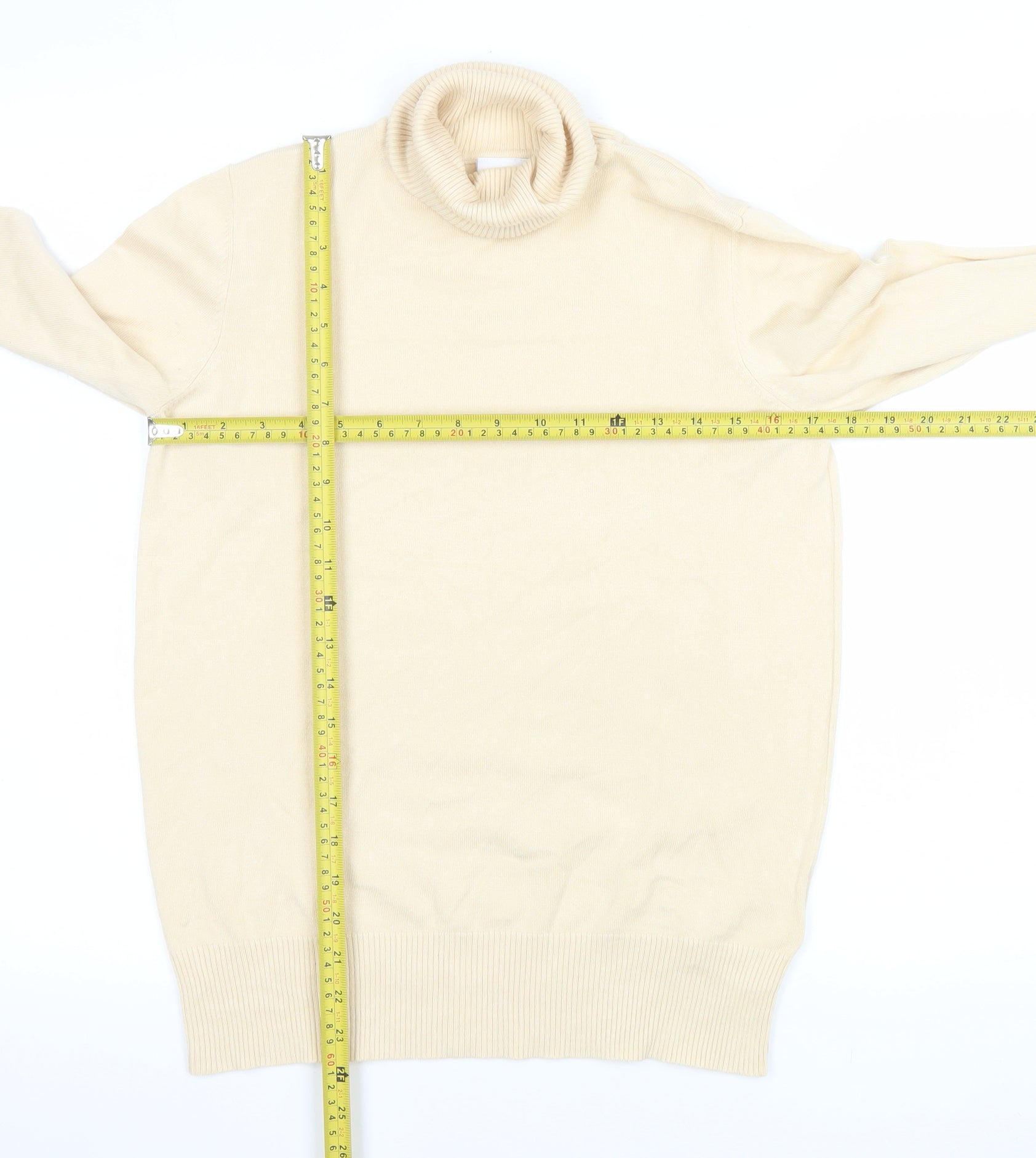Womens Beige Roll Neck Long Sleeve Pullover Jumper L