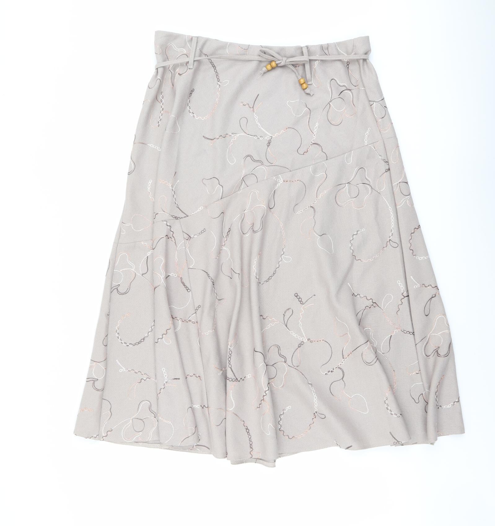 Womens Beige Geometric Polyester Swing Skirt Size 34 in Drawstring