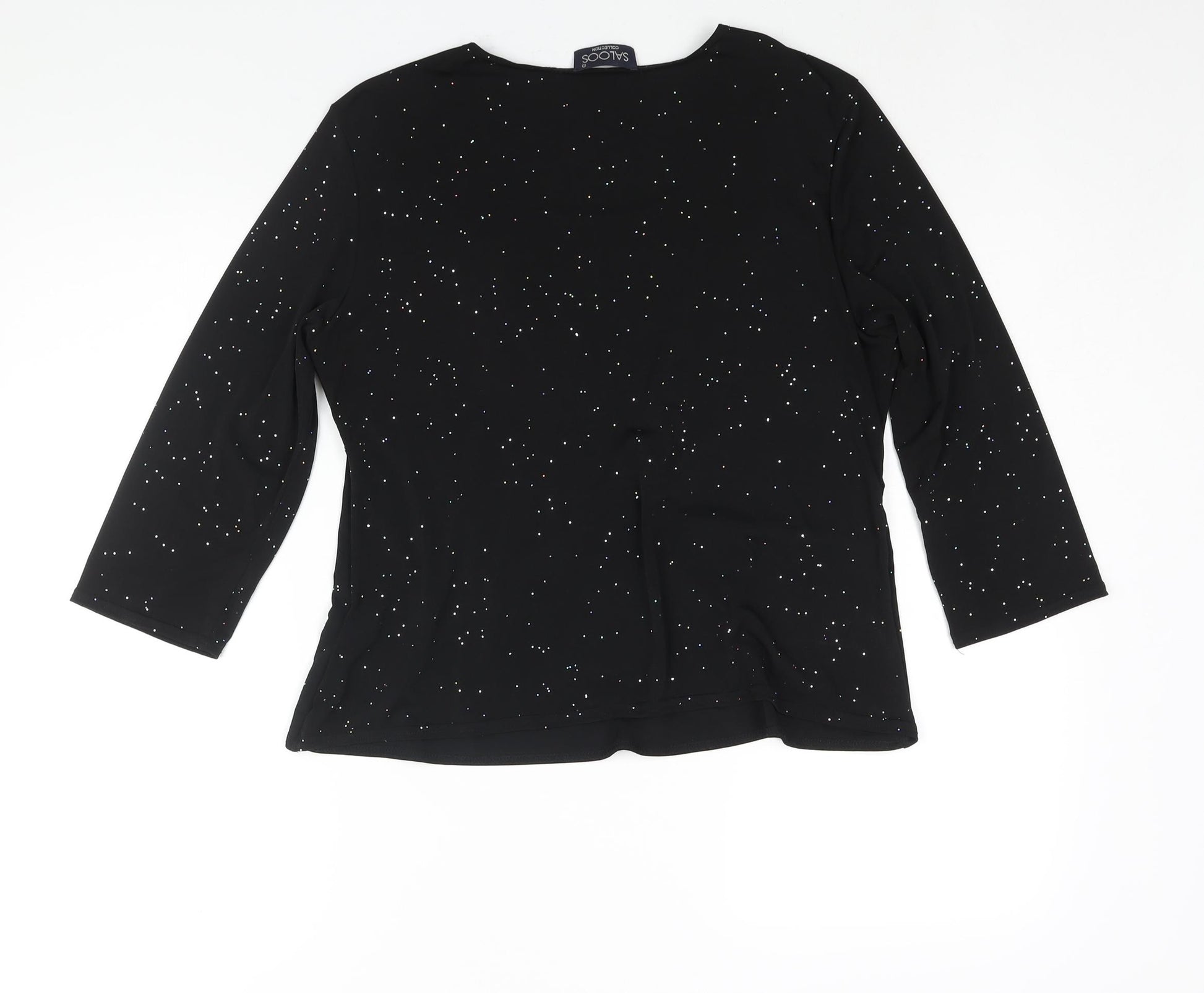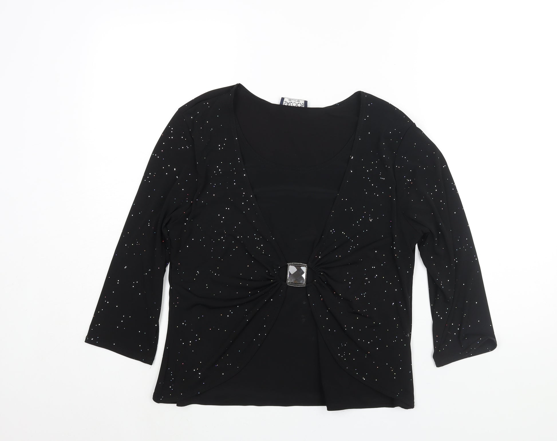 Womens Black Polyester Basic Blouse Size L Round Neck - Sequin Rhinestone Clasp Detail