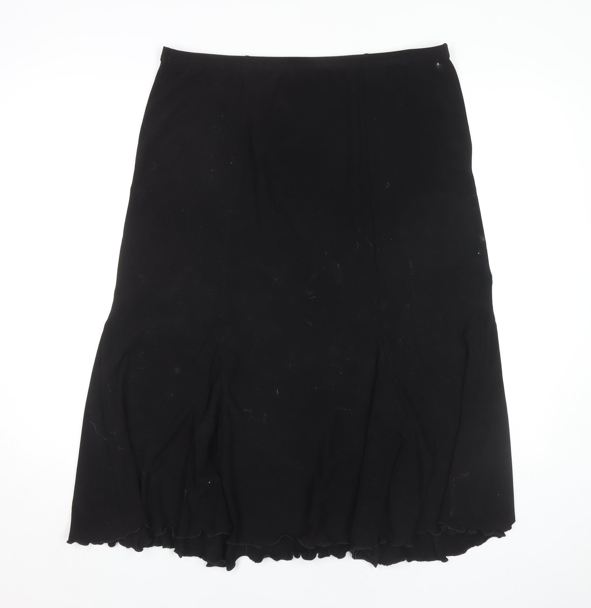 This Saloos skirt, in a timeless black, is a chic addition to any woman’s wardrobe. Crafted from a blend of polyester and elastane, it promises not only style but comfort and stretch, allowing for both a flattering fit and ease of movement. The skirt is in excellent condition, with only slight lint visible, indicating minimal prior wear and no significant flaws.Designed in a size XL, it caters perfectly to women seeking a true fit. Its understated elegance makes it an ideal choice for various occasions, from a casual day out to evening gatherings, offering versatile style options.The skirt's straightforward design is complemented by a 'no pattern' texture, keeping the focus on its sleek silhouette and classic appeal. Whether paired with a blouse for work, or a casual top for weekends, this piece adapts effortlessly.Make this Saloos skirt a staple in your fashion repertoire and experience the blend of classic style with modern comfort.