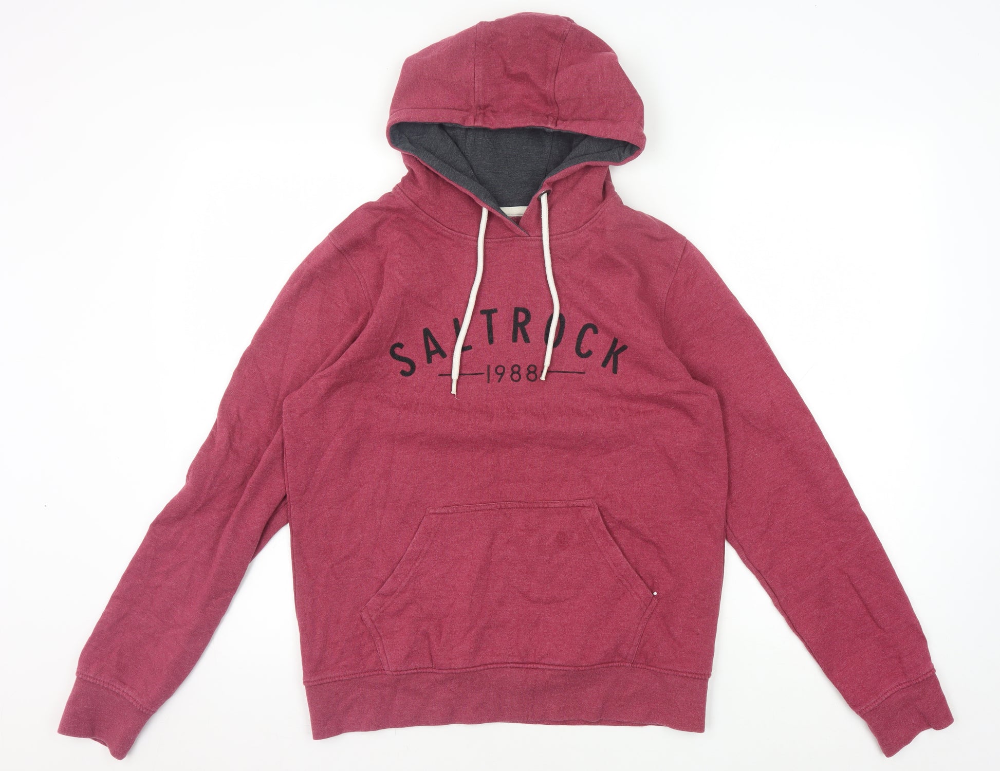 Elevate your casual wardrobe with this Saltrock Men's Red Graphic Pullover Hoodie. Perfect for the cooler months, this hoodie combines comfort and style effortlessly. Crafted from a soft jersey fabric blend of 60% cotton and 40% polyester, it promises durability and warmth. The rich red colour and prominent logo accent make it an eye-catching staple piece, ideal for both relaxed outings and casual meetups. Designed in a classic pullover style, it features a practical drawstring closure on the hood, allowing you to adjust for the perfect fit and added warmth. The long sleeves and regular fit enhance comfort, making it suitable for effortless layering over tees or under jackets. Whether you're off to a weekend adventure or simply enjoying a laid-back day, the hoodie’s kangaroo pocket is perfect for keeping your essentials handy while also providing a cosy spot for your hands. The graphic print adds a touch of personality to your ensemble, complemented by the hoodie’s signature Saltrock logo. Ideal for men who appreciate a blend of style and functionality, this pullover is a versatile addition to your wardrobe. Pair it with jeans or joggers for an unbeatable combination of fashion-forward style and everyday comfort.