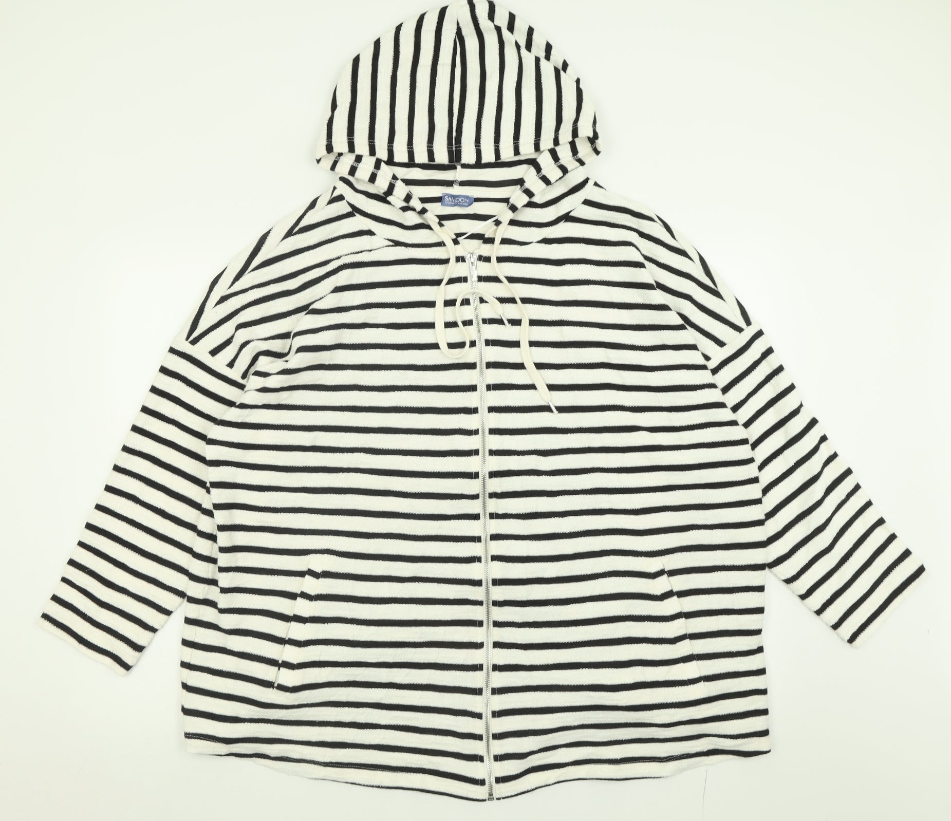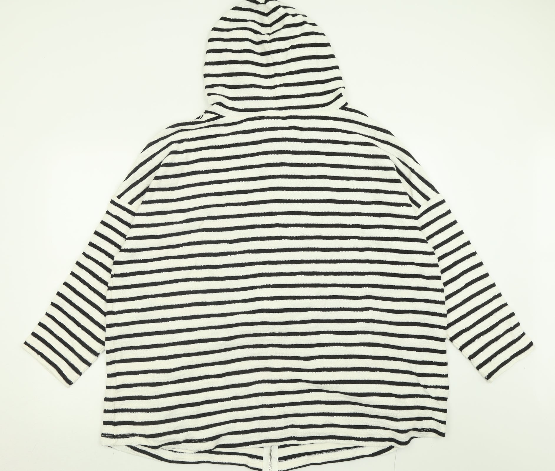 Womens White Striped Cotton Full Zip Hoodie Size 28 Zip