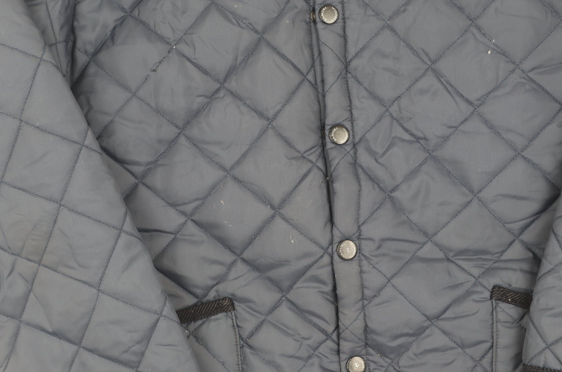 Upgrade your outerwear collection with this stylish quilted jacket from Samuel Windsor, perfect for the discerning gentleman. Designed in a versatile blue hue, this mid-length jacket is crafted from durable polyester, making it showerproof and ideal for unpredictable weather. The jacket features a classic stand-up collar and a functional button closure, ensuring both comfort and practicality. Suitable for spring and autumn, it offers a regular fit, making it an ideal choice for casual occasions. The quilted pattern adds a touch of sophistication and texture, while the jacket's blue colour enhances its versatility, allowing for easy pairing with various ensembles. Whether you're heading for a casual day out or facing a brisk autumn evening, this Samuel Windsor jacket will provide reliable coverage and style. Despite being previously owned, it remains in excellent condition with only a few light marks that do not diminish its overall appeal. Embrace the blend of elegant design and functional wear with this must-have jacket that balances style and weather protection seamlessly.