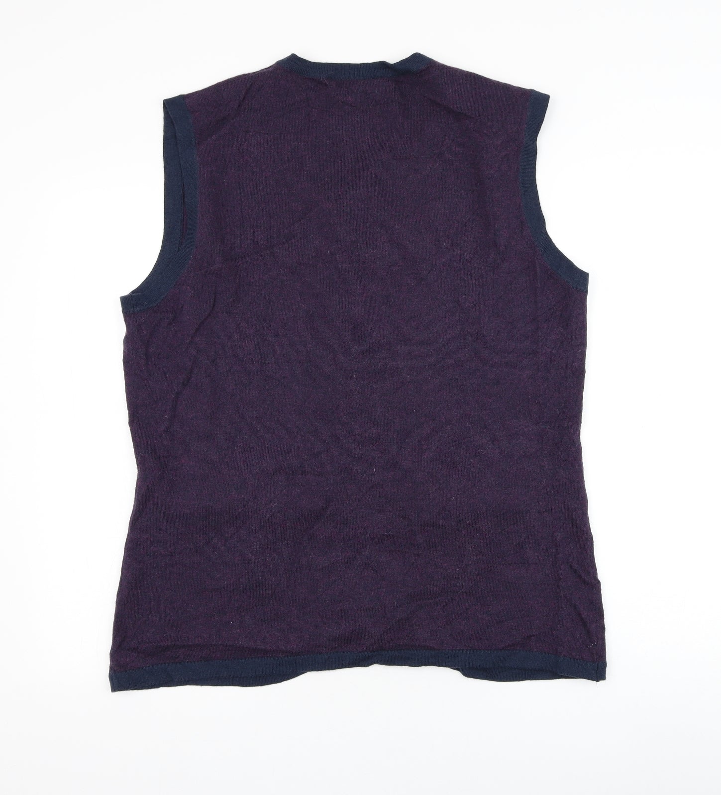 Mens Purple V-Neck Cotton Vest Jumper Size XL