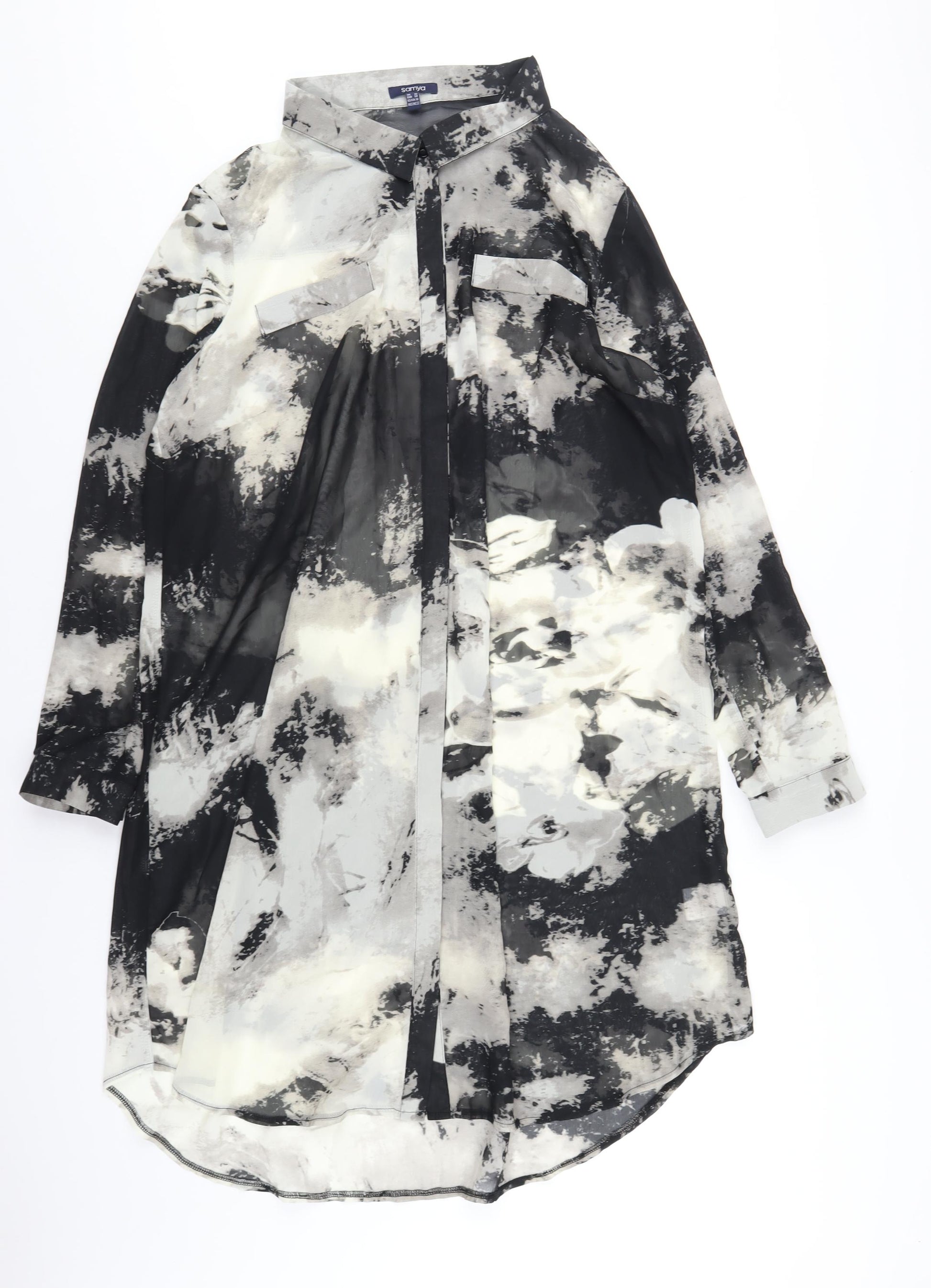 Womens Multicoloured Geometric Polyester Shirt Dress Size 22 Collared Button