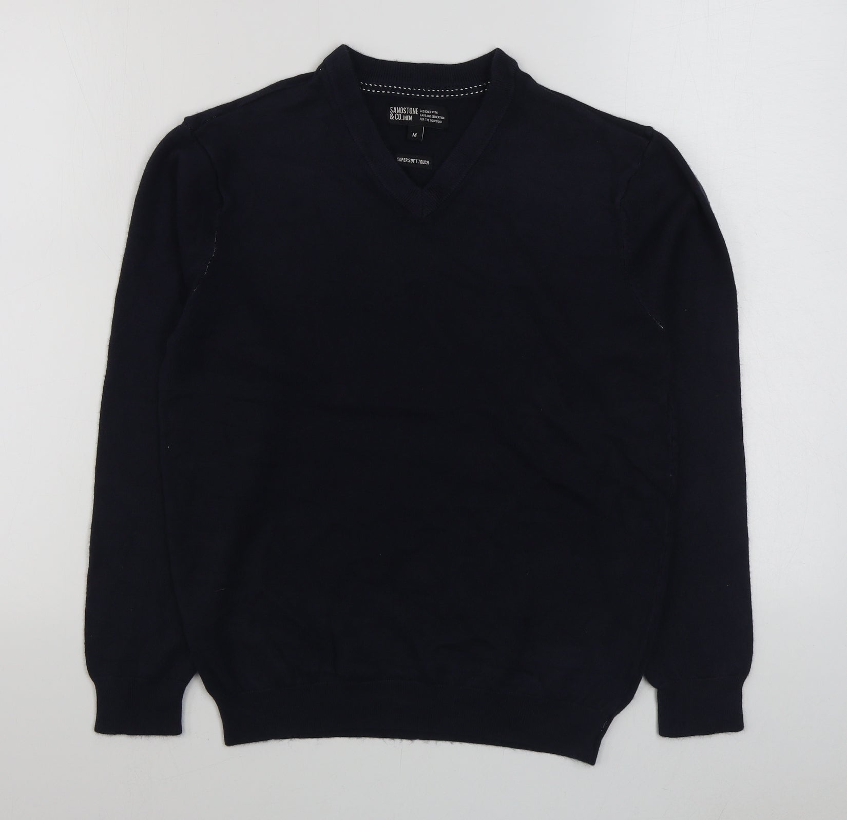 Mens Blue V-Neck Acrylic Pullover Jumper Size M