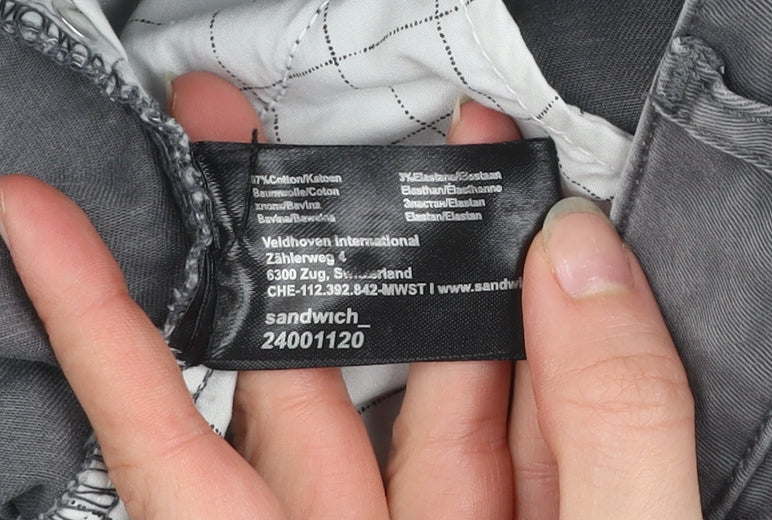 Step out in effortless style with these Sandwich Men’s Grey Slim Fit Skinny Jeans in size 38. Crafted from a high-quality denim blend of 97% cotton and 3% elastane, these jeans offer a soft, breathable feel while providing just the right amount of stretch for day-long comfort and ease of movement. The slim fit and skinny silhouette deliver a modern, flattering appearance, perfect for creating a sleek and versatile look that transitions seamlessly from casual to smart-casual occasions. The mid-rise cut ensures a comfortable fit at the waist, while the traditional five-pocket design adds practical convenience and timeless appeal. Finished in a smooth grey tone, these jeans pair easily with shirts, t-shirts, or knitwear for a refined yet relaxed style suitable for any season. The button and zip fastening provide a secure closure, maintaining classic denim construction with a contemporary finish. These Sandwich jeans are machine washable for easy care and are built to maintain their shape and tone wash after wash. Ideal for everyday wear, whether you're heading to work, meeting friends, or enjoying weekend downtime, they’re a dependable addition to any man’s wardrobe. In excellent pre-owned condition, showing minimal signs of wear, these jeans combine quality materials with durable craftsmanship that reflects the sophistication Sandwich is known for. Perfect for men who appreciate a tailored look without compromising on comfort or versatility, these jeans offer great value and impeccable style at an affordable used price. Add these clean and stylish grey skinny jeans to your collection to elevate your wardrobe essentials with a refined edge that can be styled effortlessly across seasons. A reliable staple that’s as comfortable as it is contemporary, making it a go-to choice for modern men who value both quality and design.