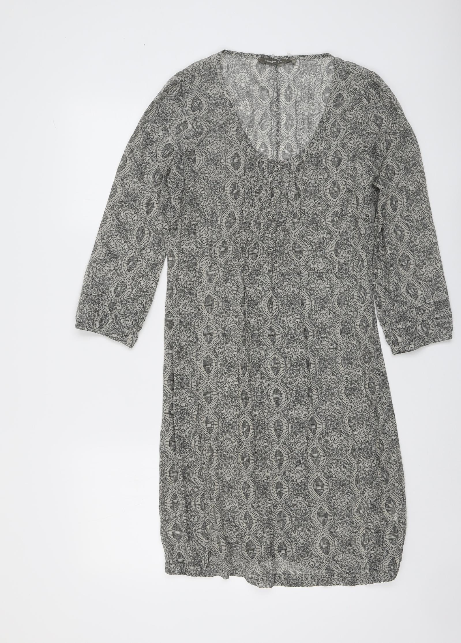 Womens Grey Geometric Polyester A-Line Size 6 Scoop Neck Pullover