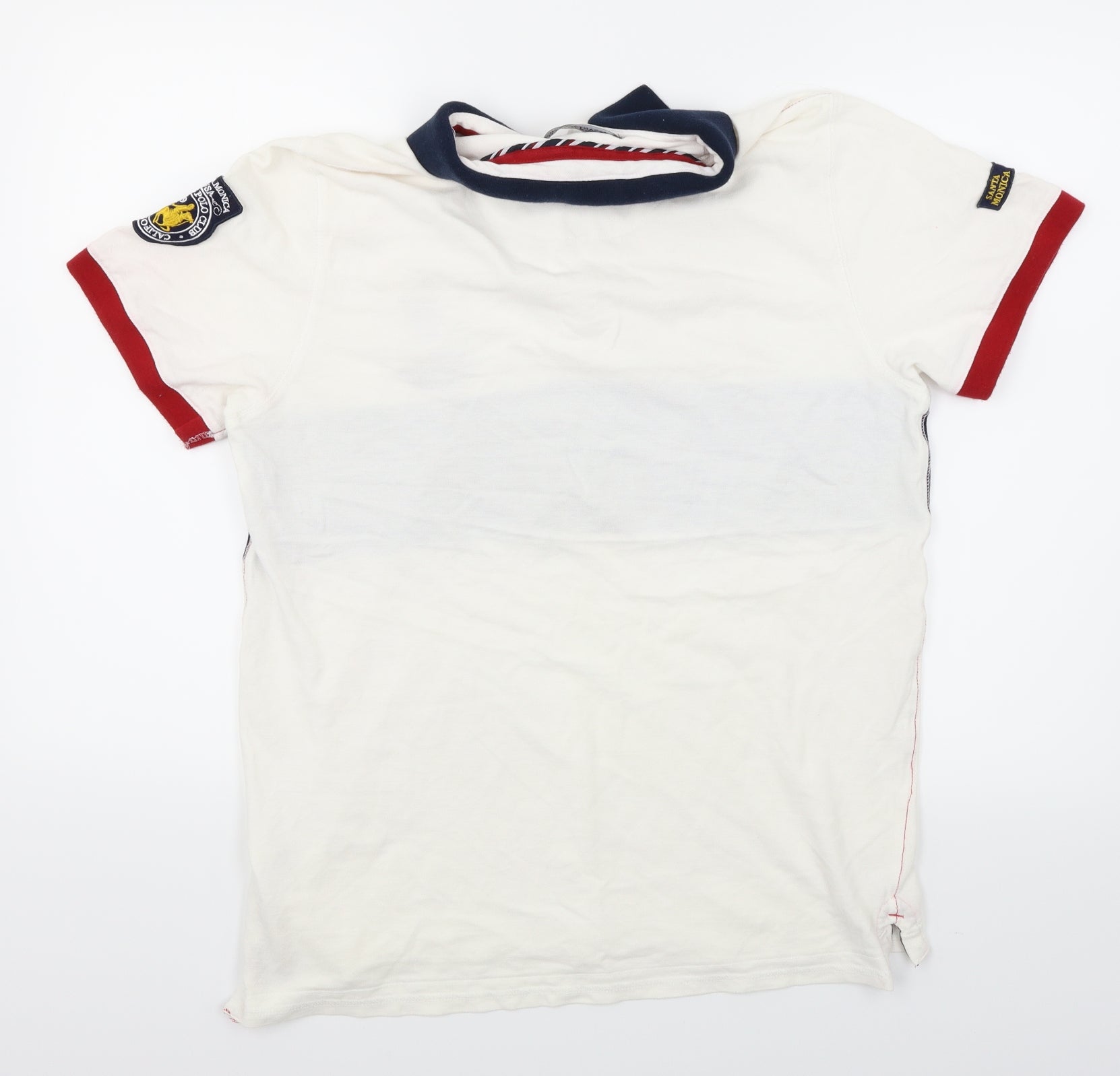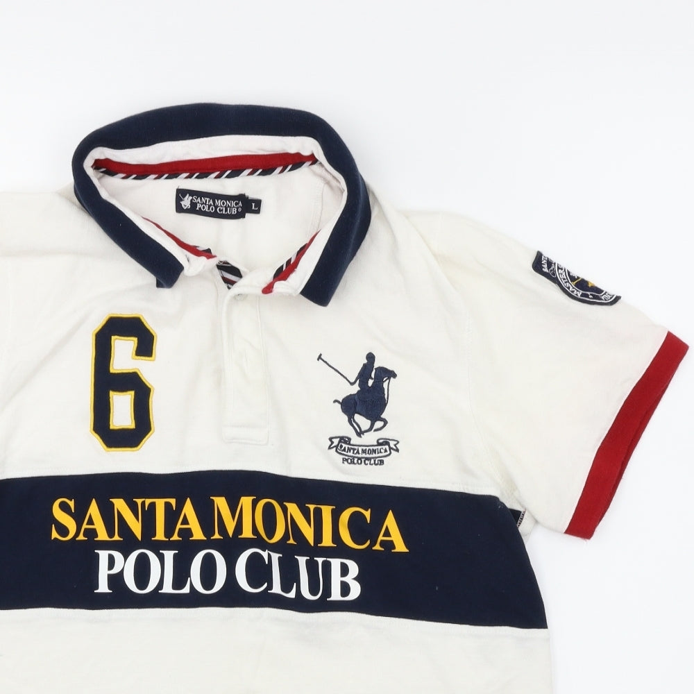 Massimo Dutti Men's White Cotton Blend Polo Shirt Size L