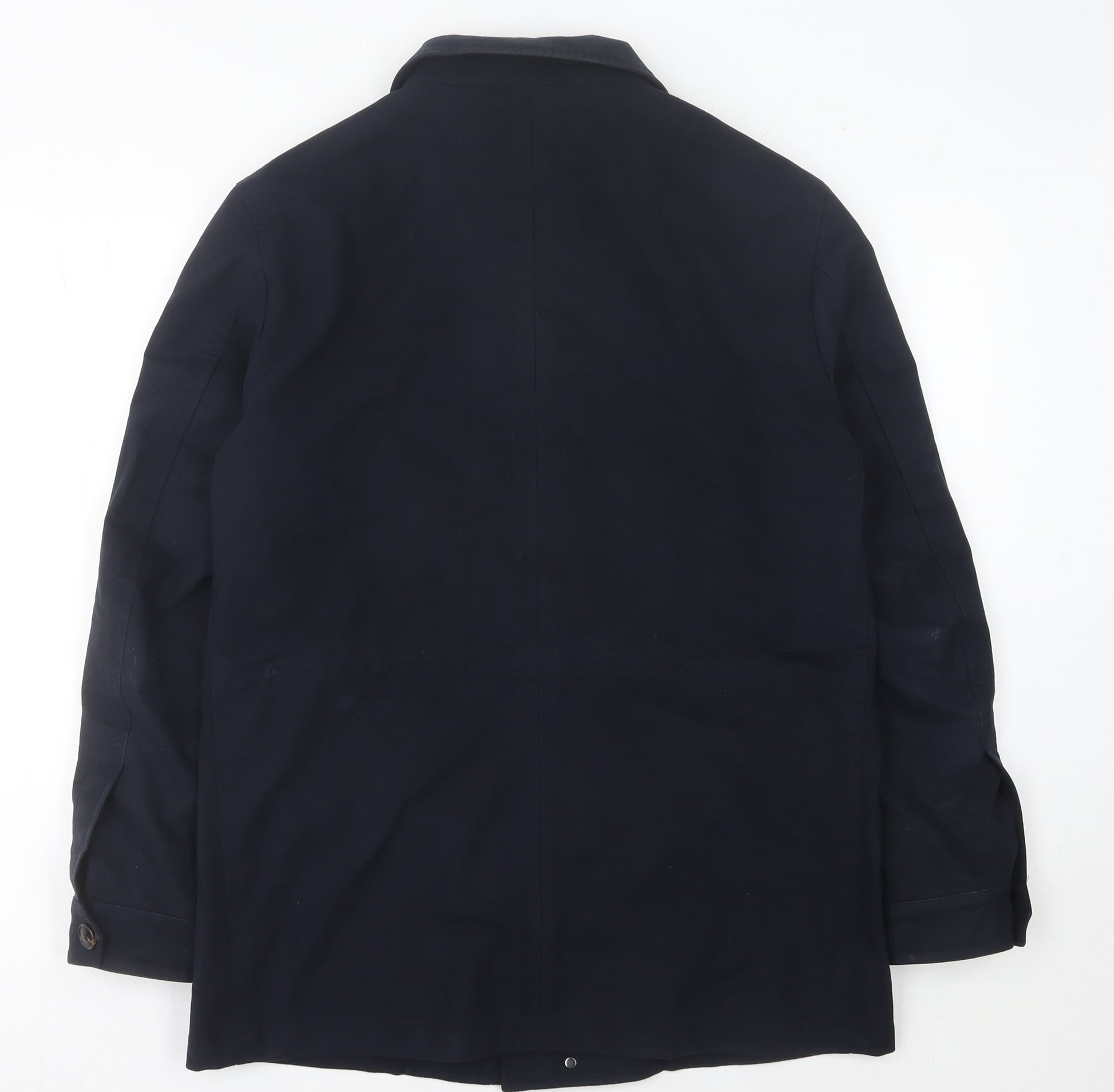 Elevate your outerwear collection with this Sarto Luxury Tailoring men's mid-length jacket, designed for style, comfort, and practicality. Crafted from a high-quality blend of 92% felt and 8% polyurethane, this jacket offers a refined look with a soft yet durable finish. The deep blue colour exudes sophistication, making it a versatile addition to any wardrobe, perfect for both business and casual wear.The jacket features a classic point collar and a straightforward, streamlined silhouette that makes it ideal for everyday wear. Its full zip closure ensures easy fastening, while the two generously sized front flap pockets combine functionality with style, providing ample storage for your essentials. Inside, the jacket is fully lined with viscose, offering a smooth feel against the skin and enhancing comfort throughout the day.Perfect for transitional seasons like autumn and spring, this jacket strikes the right balance between warmth and breathability. The mid-length cut offers excellent coverage without sacrificing mobility, making it a practical choice for travel, commuting, or casual outings.This piece is in excellent pre-owned condition, showing only light signs of wear on the fabric, which does not detract from its elegant appearance and premium feel. A true testament to Sarto's commitment to fine tailoring, this jacket is a wardrobe essential for those who appreciate understated luxury and timeless design.Whether paired with smart trousers for a business meeting or jeans for a weekend stroll, this Sarto jacket seamlessly adapts to various styling needs, ensuring you look sharp and feel comfortable wherever you go.