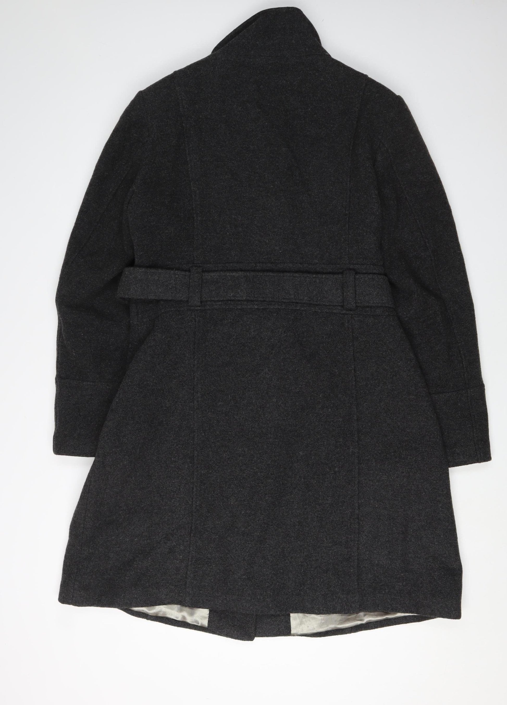Women's Black Wool Blend Belted Overcoat Size 16