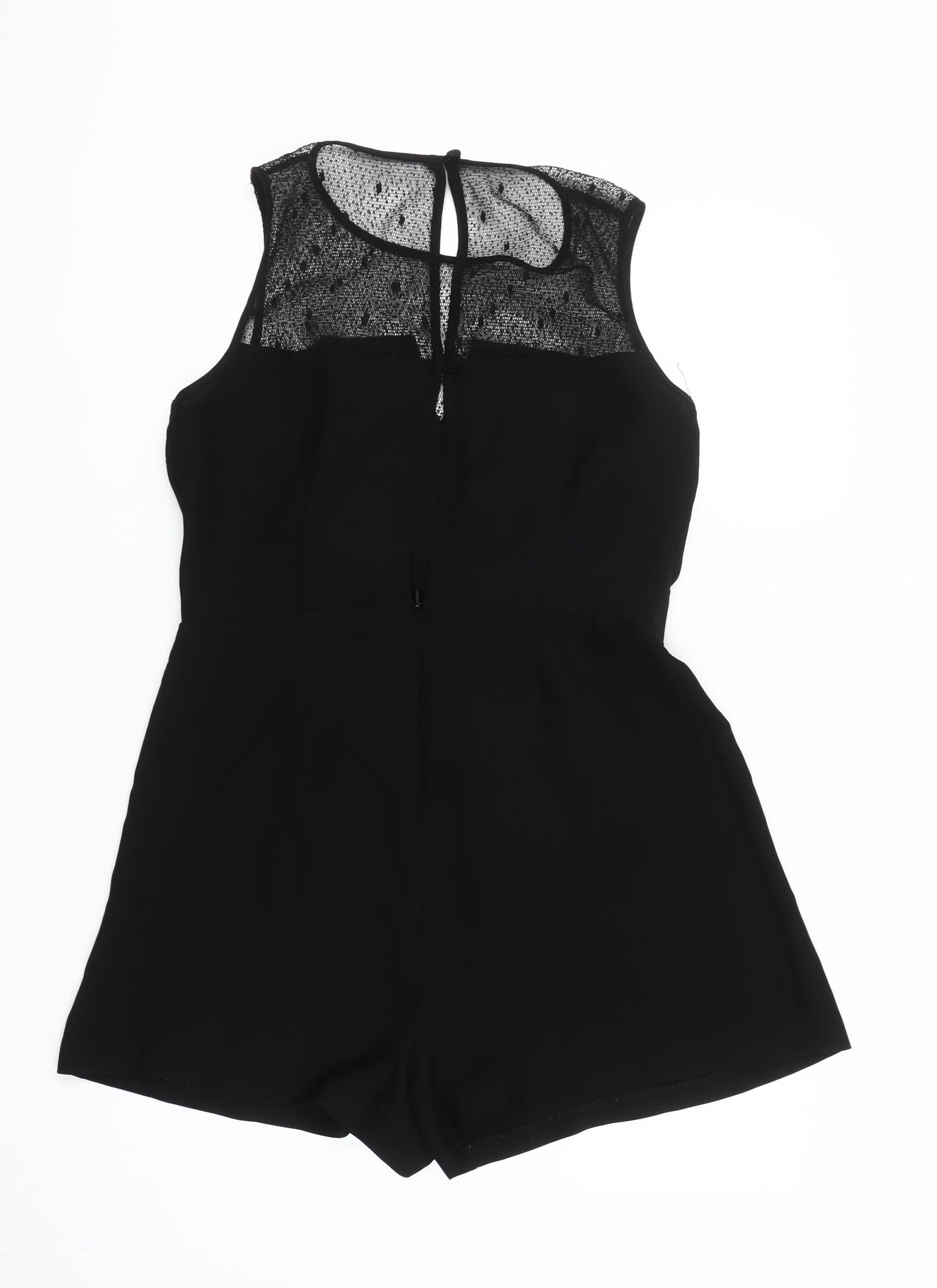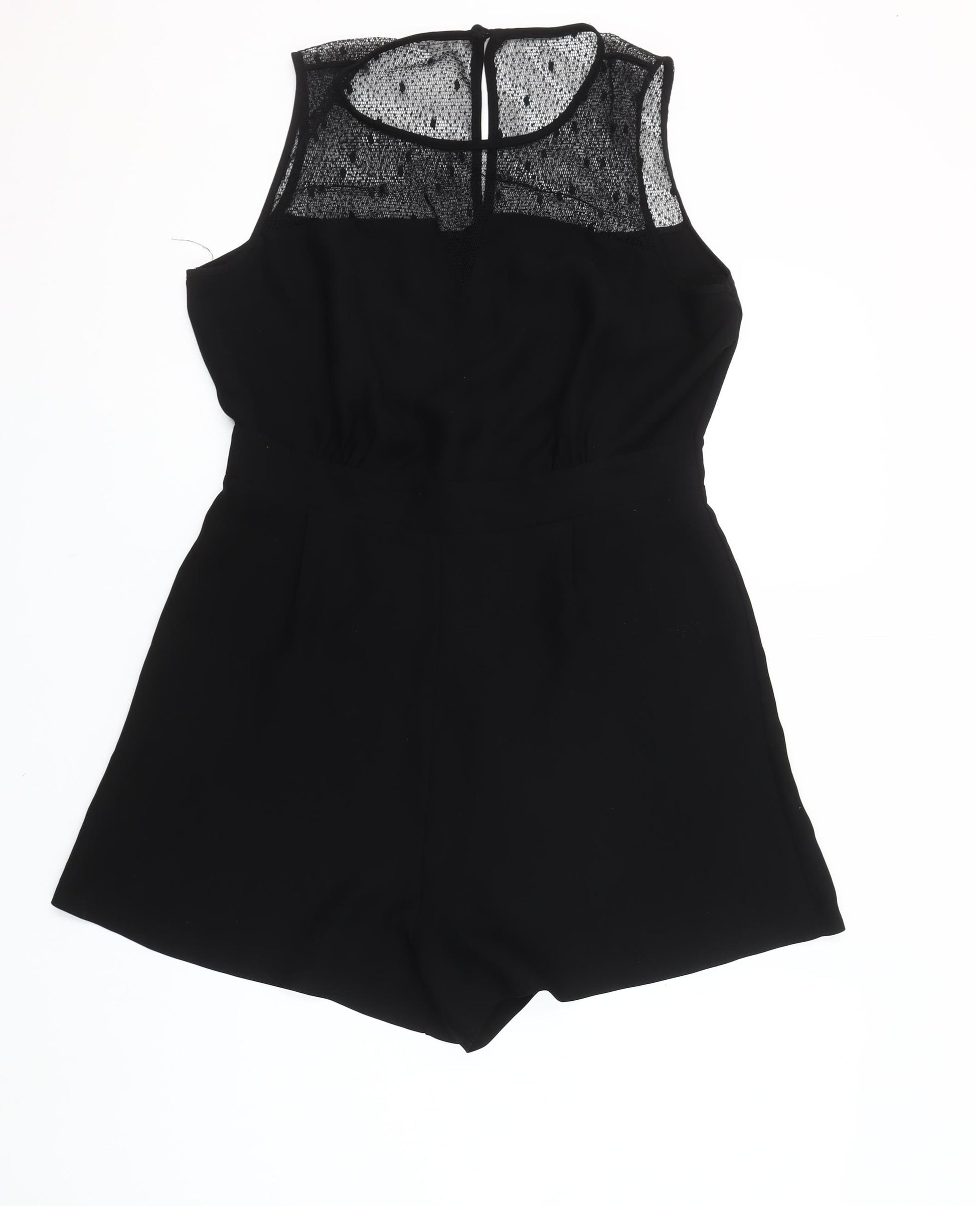 Women Black Lace Detail Sleeveless Playsuit Size 14