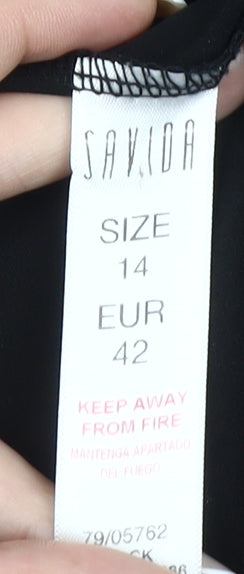 Step into effortless style with this chic black playsuit from Savida, designed especially for women who love to combine sophistication with comfort. Crafted from 100% polyester, this woven playsuit ensures a lightweight and breathable fit, making it ideal for warm evenings or statement party looks. The sleeveless cut paired with a flattering round neckline creates a sleek silhouette that highlights the shoulders and neckline, while the delicate lace accents across the sheer upper bodice add a beautiful touch of femininity and elegance. Designed as a one-piece playsuit in size 14, this style offers a regular fit that sits beautifully on the body without compromising comfort. The streamlined straight-leg shorts make it stylish yet easy to wear, offering plenty of versatility for any occasion. Whether dressing for a party, a cocktail evening, or a night out on the town, this black playsuit delivers understated glamour and timeless appeal. With back zip and button fastening, it provides a secure fit while still being easy to slip into. The all-black design means it can be effortlessly paired with bold accessories, standout heels, or even a tailored jacket for a more polished appearance. Its sleeveless cut and breathable material make it perfect for summer wear, yet it can be styled with layers for other seasons too. Minimal signs of wear keep this piece in excellent condition, allowing you to enjoy high-quality style at exceptional value. Whether you’re stepping out for an evening celebration, a cocktail party, or simply a stylish outing, this Savida playsuit is the perfect addition to your wardrobe—versatile, flattering, and timelessly modern.