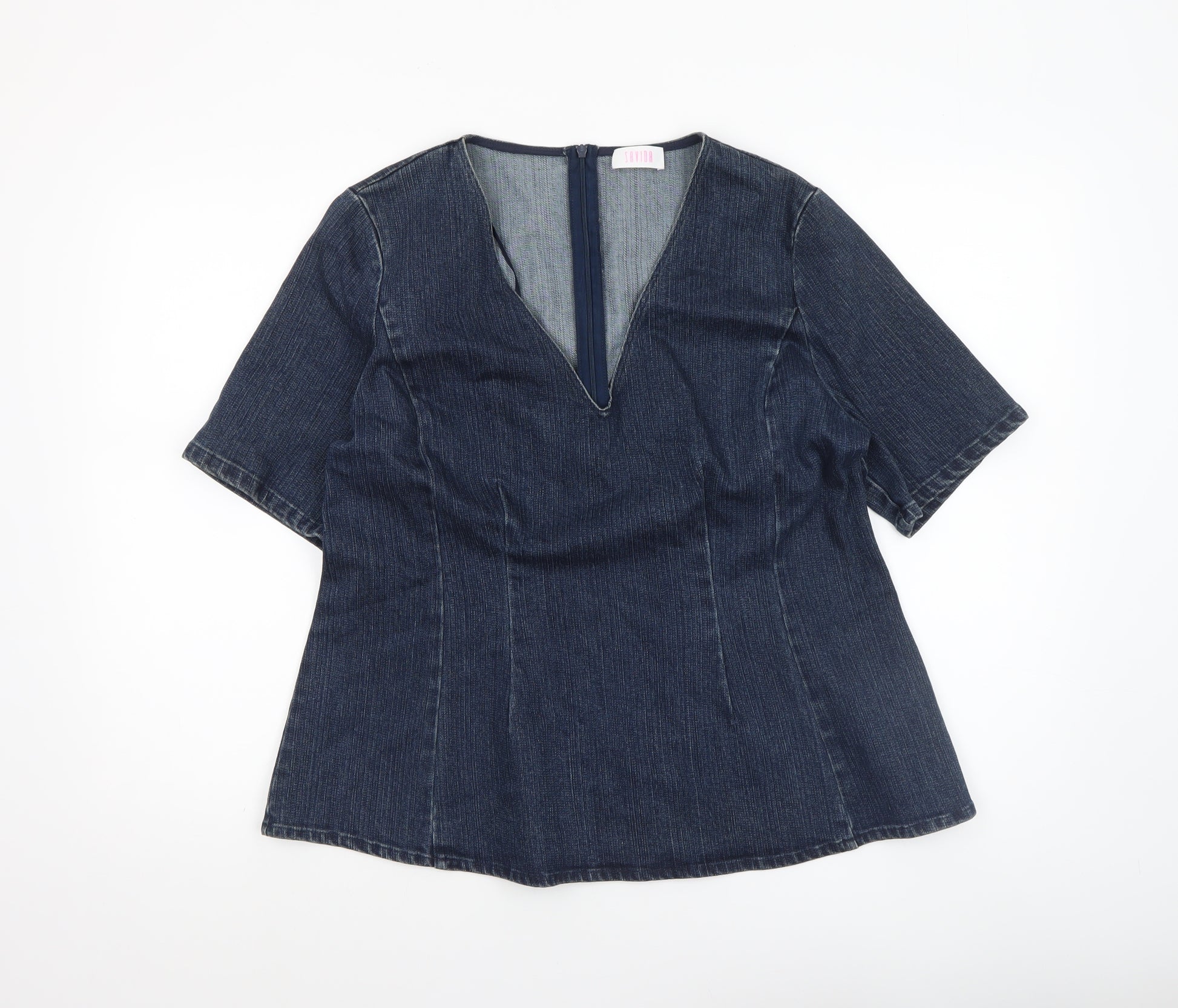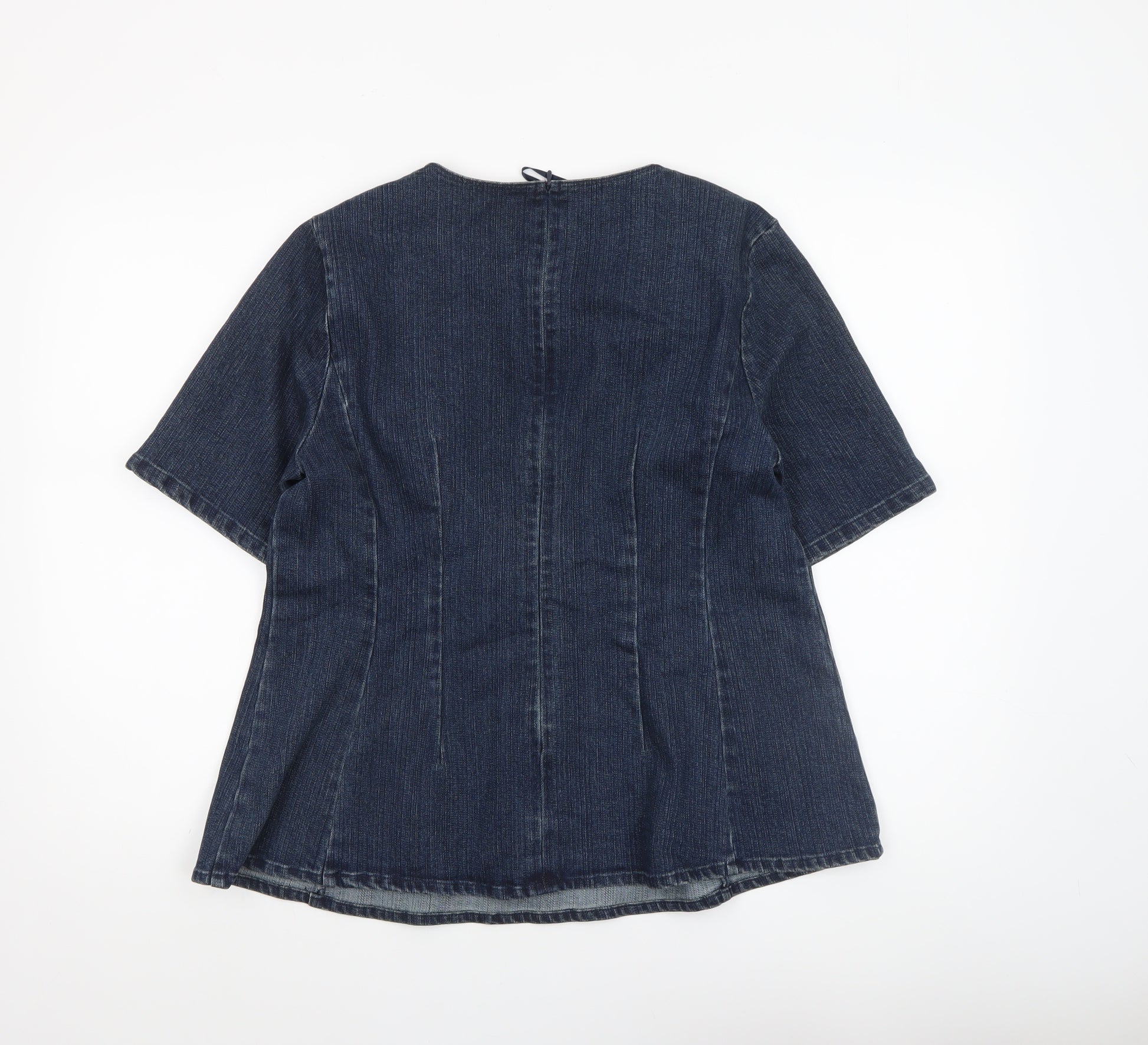 Women Blue Denim V-Neck Short Sleeve Blouse UK 14